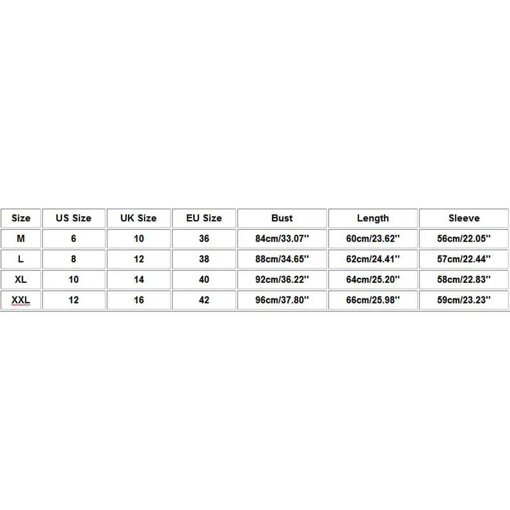 Размеры Размер США Размер Великобритании Размер ЕС Бюст Длина Рукав М 6 10 36 84 см/33,07 дюйма 60 см/23,62 дюйма 56 см/22,05 дюйма L 8 12 38 88 см/34,65 дюйма 62 см/24,41 дюйма 57 см/22,44 дюйма XL 10 14 40 92 см/36,22 дюйма 64 см/25,20 дюйма 58 см/22,83 дюйма XXL 12 16 дюймов 42 96 см/37,80 дюйма 66 см/25,98 дюйма 59 см/23,23 дюйма