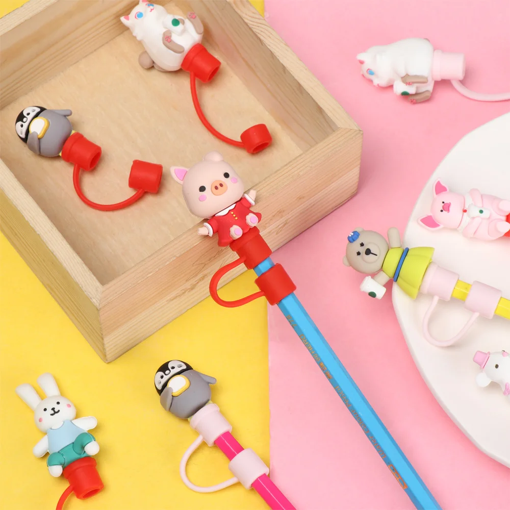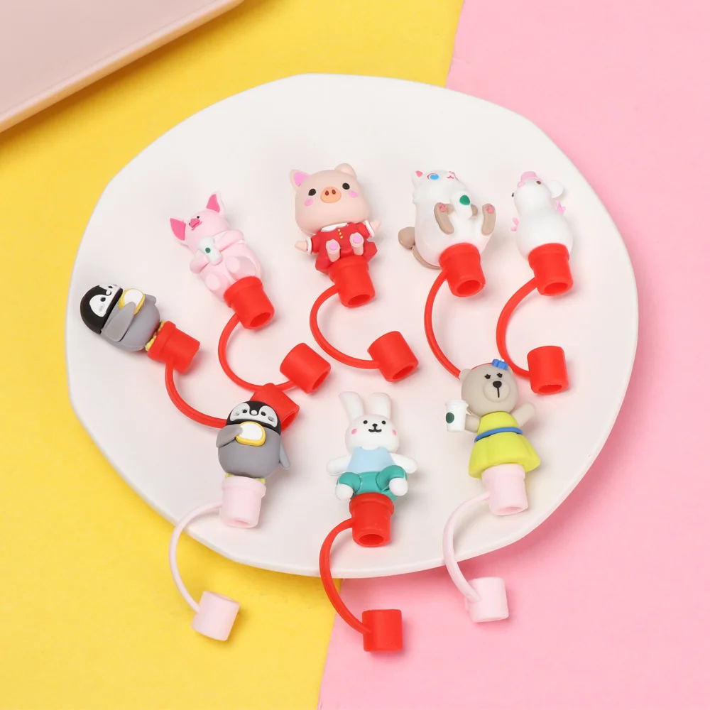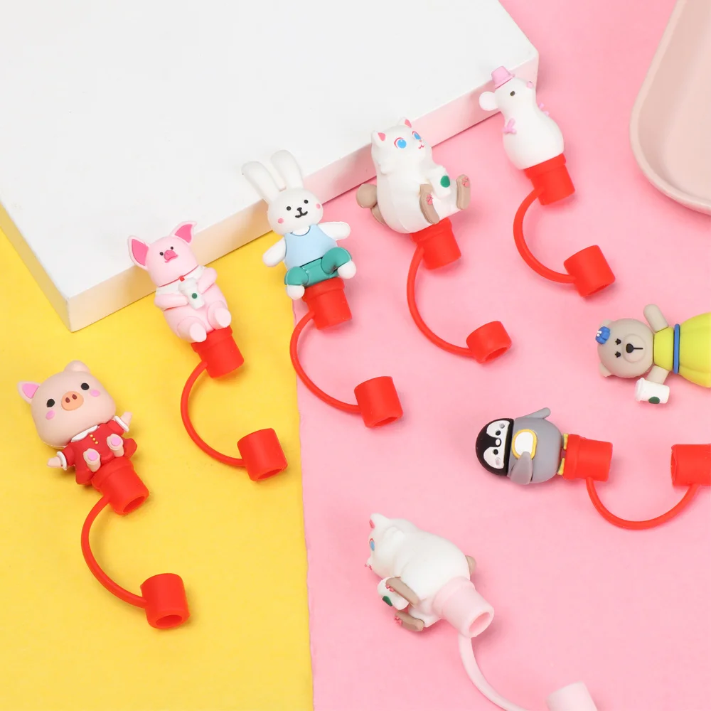 Новая креативная Милая силиконовая соломенная вилка с мультяшными затычками, многоразовая защита от брызг, пылезащитная крышка, аксессуары для стеклянных стаканчиков