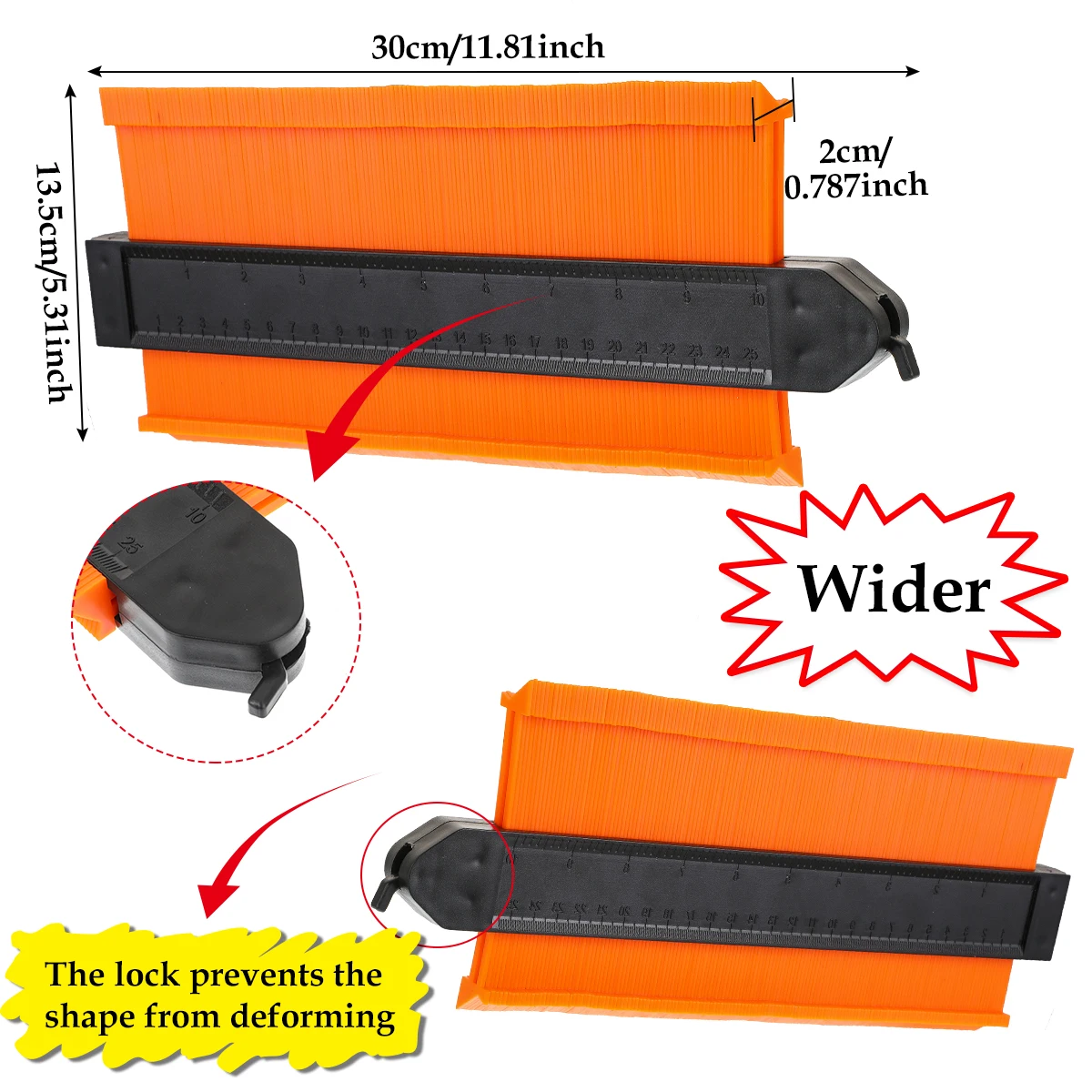 Неправильный контурный датчик профиля предназначен для намоточных труб, круглых рам, воздуховодов и многих объектов. Просто прижмите зуб к предмету, чтобы соответствовать контуру, а затем отследить нужную вам форму.