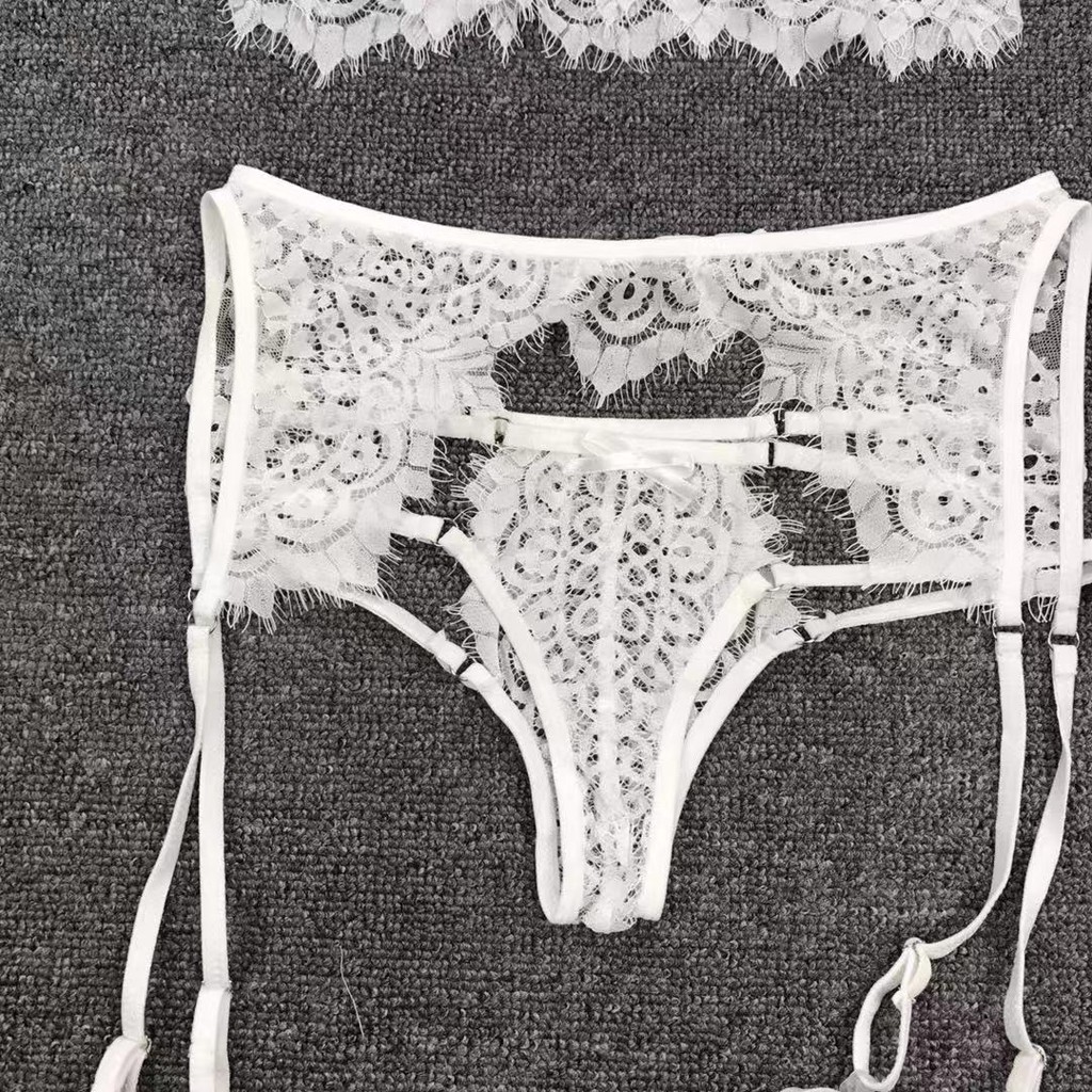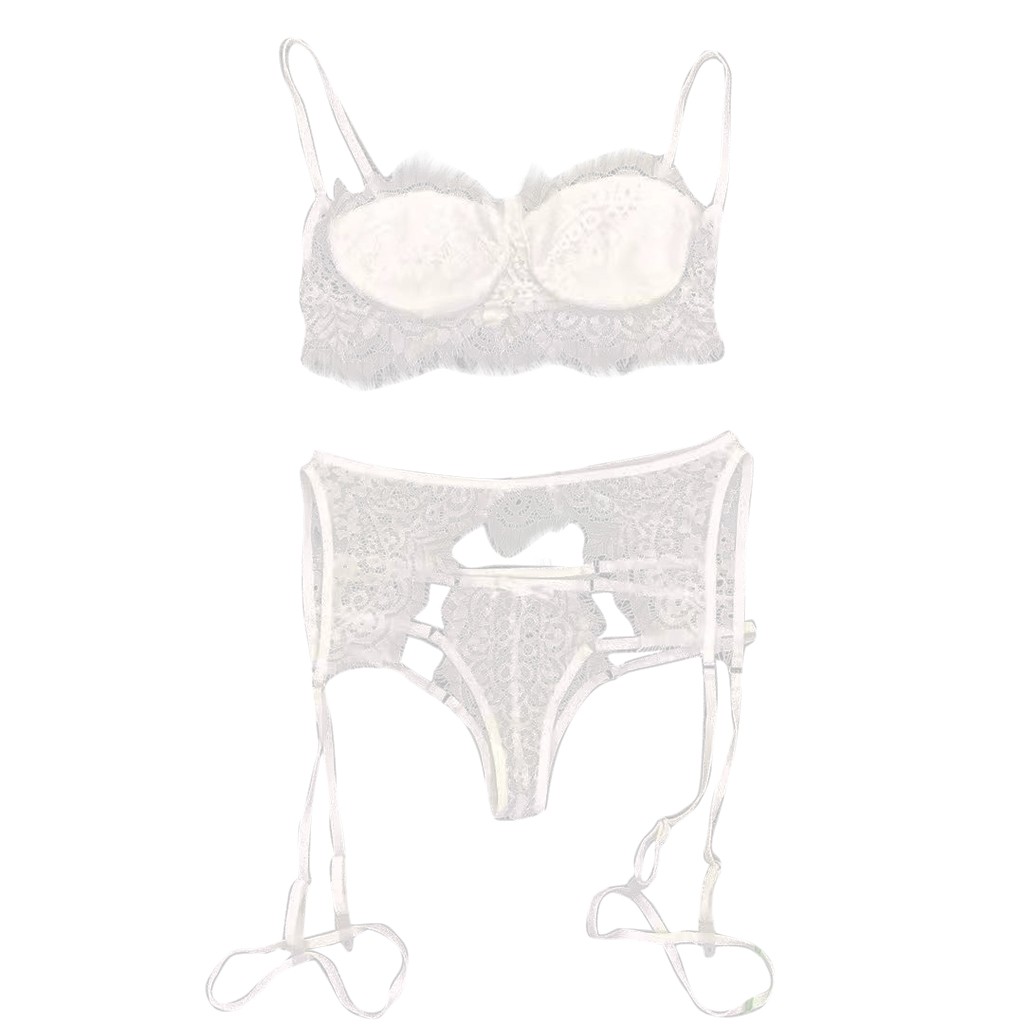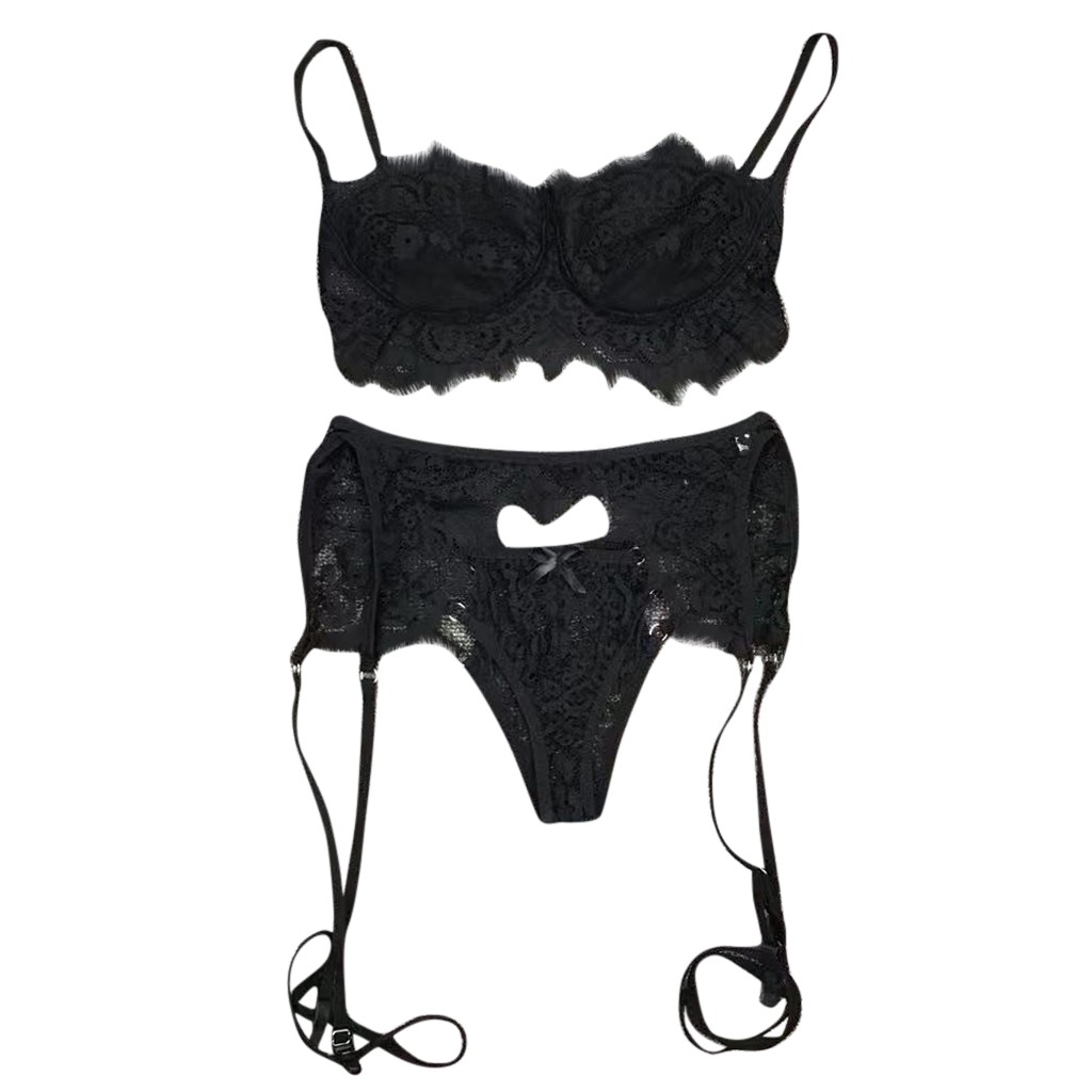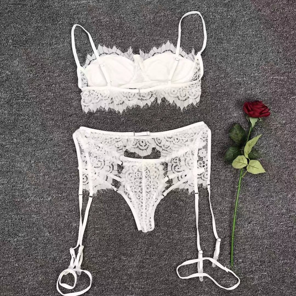 3 шт., женское кружевное сексуальное нижнее белье, бюстгальтер и трусики, подвязка, комплект нижнего белья, Babydoll