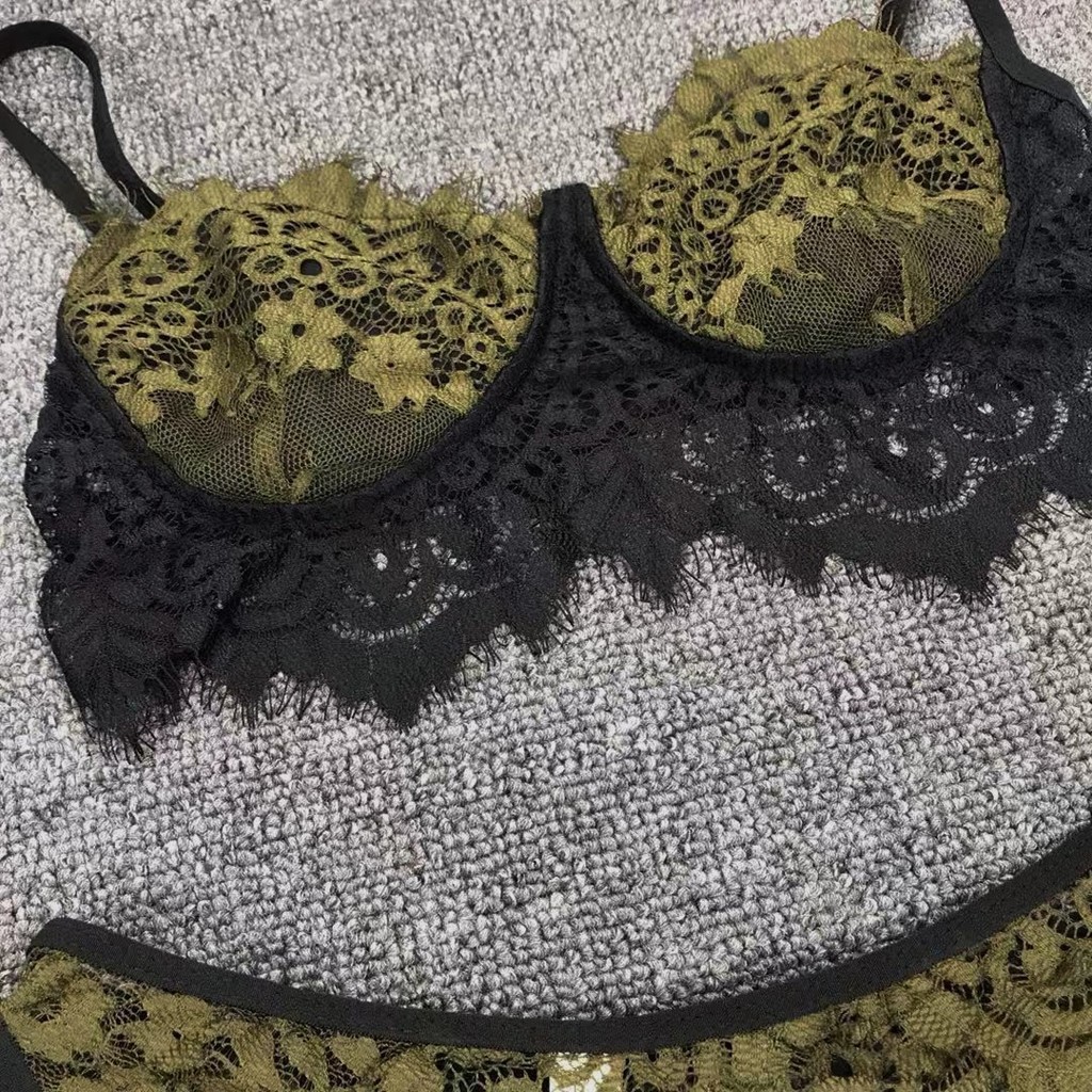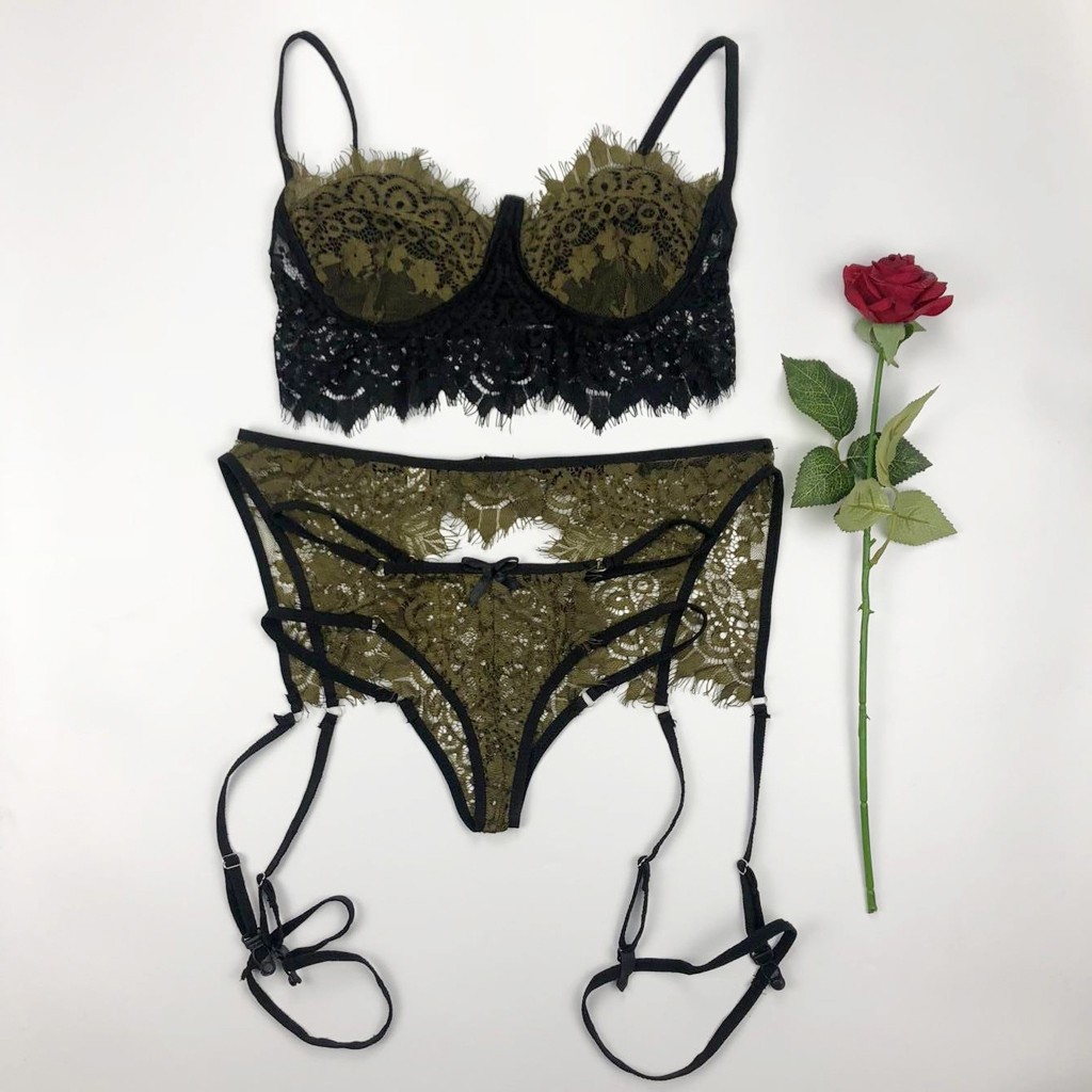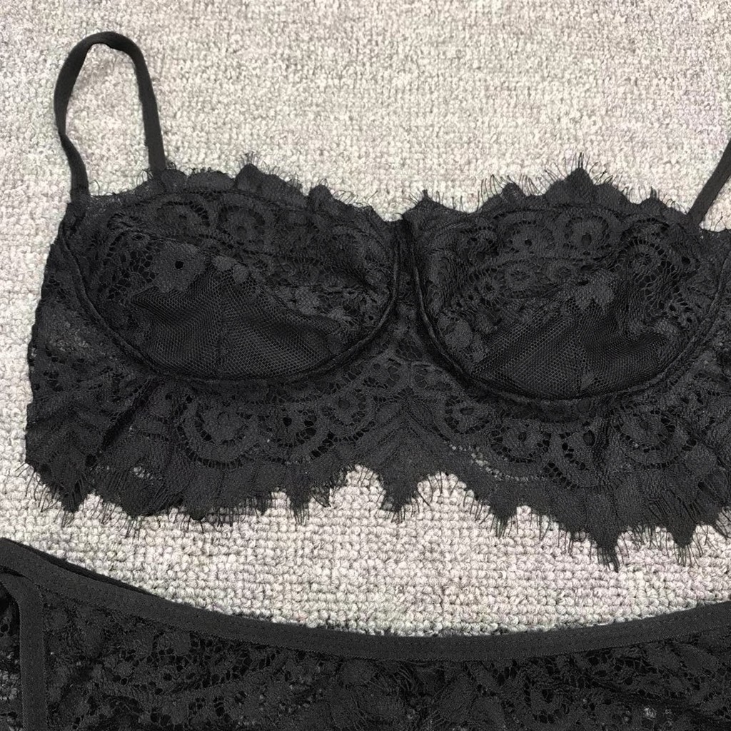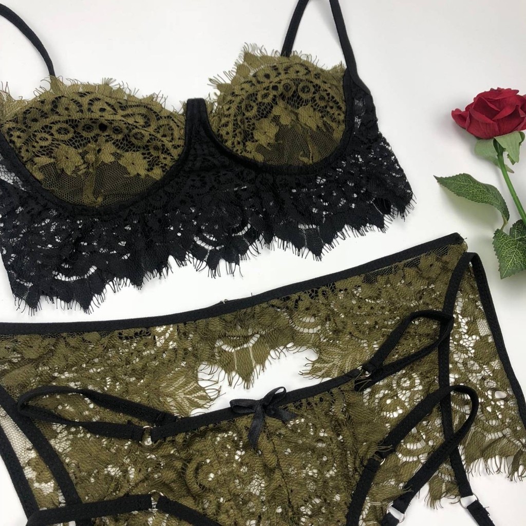 3 шт., женское кружевное сексуальное нижнее белье, бюстгальтер и трусики, подвязка, комплект нижнего белья, Babydoll
