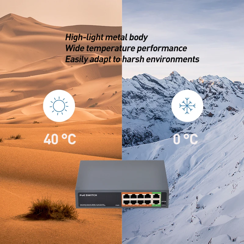 PoE коммутатор PSE108EX V2.0 обеспечивает 2x10/100 Мбит/с и 8x10/100 Мбит/с PoE Plus порты. Этот переключатель IEEE 802.3AF/at совместим, и обеспечивает питание и данные через один Ethernet кабель к любому PoE устройству, с общей мощностью 96 Вт, до 30 Вт на порт. Что обеспечивает удобную и гибкую установку. NX-POE108EX20 предназначен для малого бизнеса, который предпочитает доступное решение для PoE разворачивающей инфраструктурой.