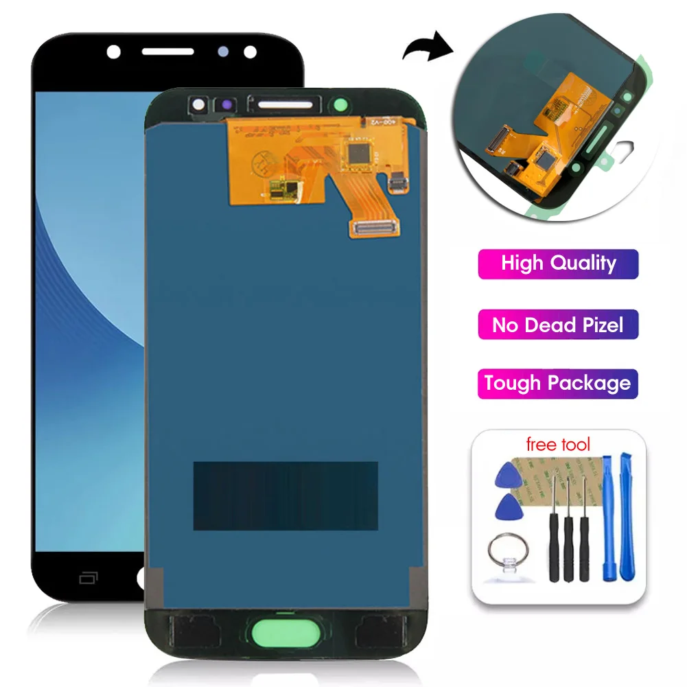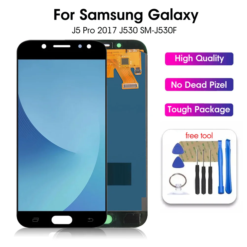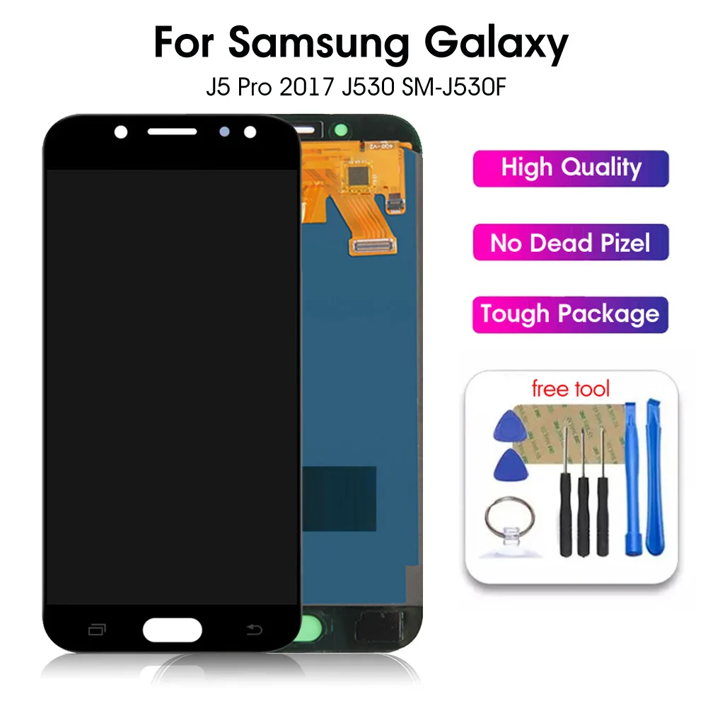 Особенности: * Точные вырезы делают его идеальным. * Полный набор инструментов для ремонта для вашего удобства использования. * Идеальные запасные части для любого сломанного, поцарапанного и неисправного экрана. Спецификация: * Название товара: дигитайзер сенсорного ЖК-экрана * Совместимые модели: для Samsung Galaxy J5 Pro 2017 J530 SM-J530F * Особенности: замена, точный, Ремонтный инструмент, работа точно Посылка включает в себя: * 1 сенсорный ЖК-экран дигитайзер Примечание: 1. Реальный цвет товара может быть s светильник ly отличаться от изображений, размещенных на веб-сайте, по причине многих факторов, таких как яркость вашего монитора и светильник яркость. 2. Возможны незначительные отклонения в измерениях вручную. Посылка включает в себя: * 1 сенсорный ЖК-экран дигитайзер