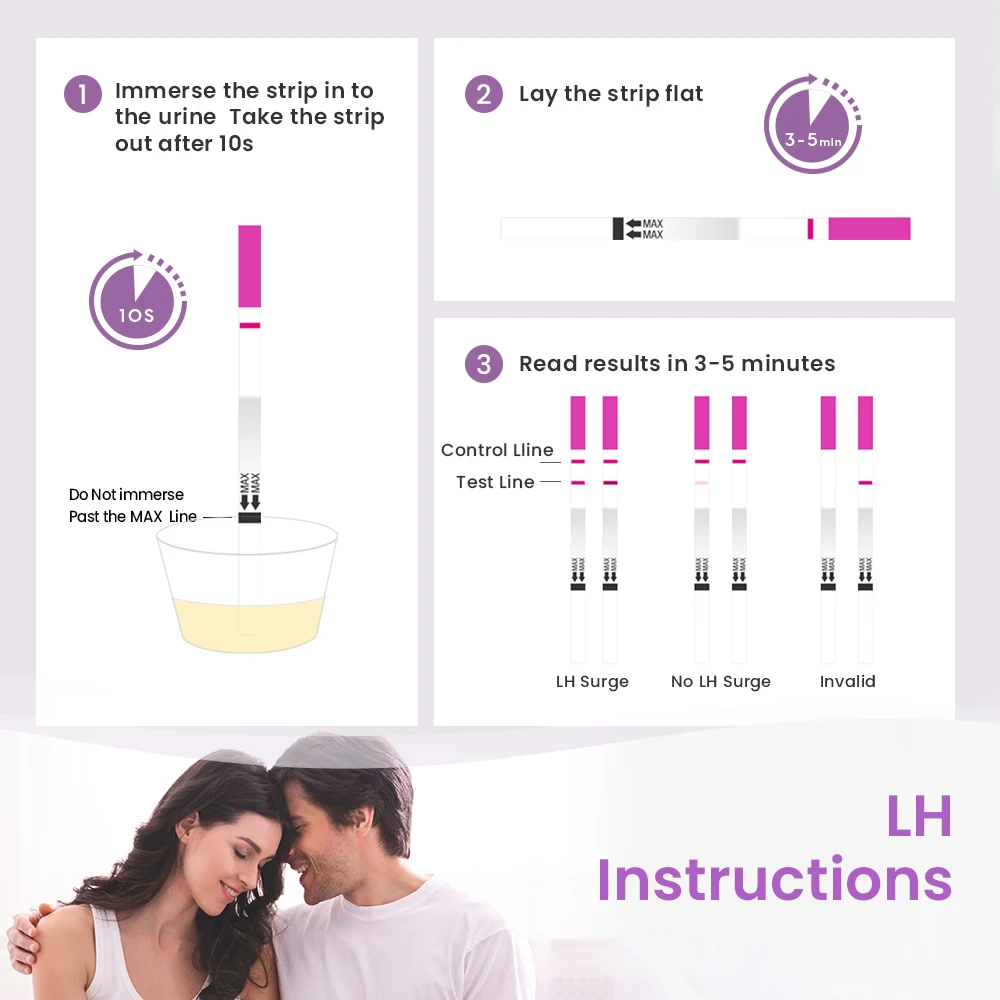 Для испытаний LH: 1. Попробуйте собрать образец мочи примерно в одно и то же время каждый день. 2. Попробуйте уменьшить количество жидкости, которую вы пьете в течение 2 часов, прежде чем использовать набор для отслеживания овуляции. 3. Чрезмерное количество жидкости разбавит Вашу мочу, что затруднит Обнаружение перенапряжения ЛГ. 4. Тестирование с полудня до раннего вечера дает вам самую точную концентрацию для тестирования. Дважды проверяйте, когда линия начинает темнее. Для Испытания На ХГЧ: 1. Первая утренняя моча рекомендуется для большей точности 2. Прочтите результаты на тестовой карте в течение десяти минут. Положительный результат не исчезнет. Но некоторые отрицательные результаты через некоторое время могут отображать слабый второй Цветовой диапазон. 3. Бросьте тест-палку, как только вы прочтете результат. Не предназначено для повторного использования.