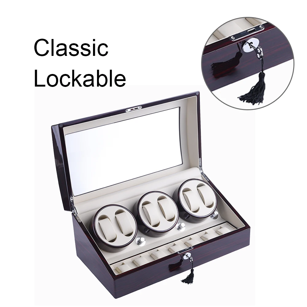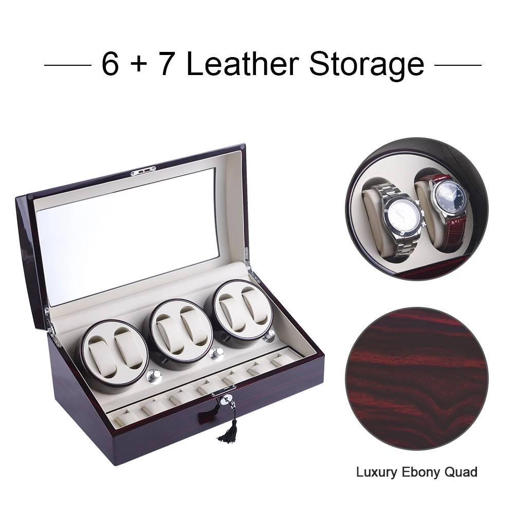 【Large Capacity】The watch winder box with 6 winder paces plus 7 storage spaces to collect your beloved watches. Compact and refined design can eliminate friction to avoid scratches between watches. High-quality lock mechanism to keep your watches safe.