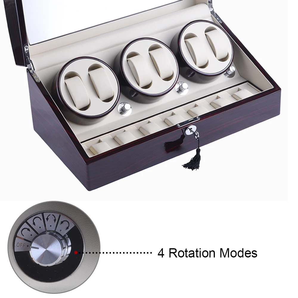 【4 Rotation Modes】Clockwise/Counterclockwise/Clockwise+counter-clockwise/ None-Intermittent clockwise +counter clockwise. The watch winders turn at regular intervals to keep the watch automatically wound and accurate when not on the wrist.