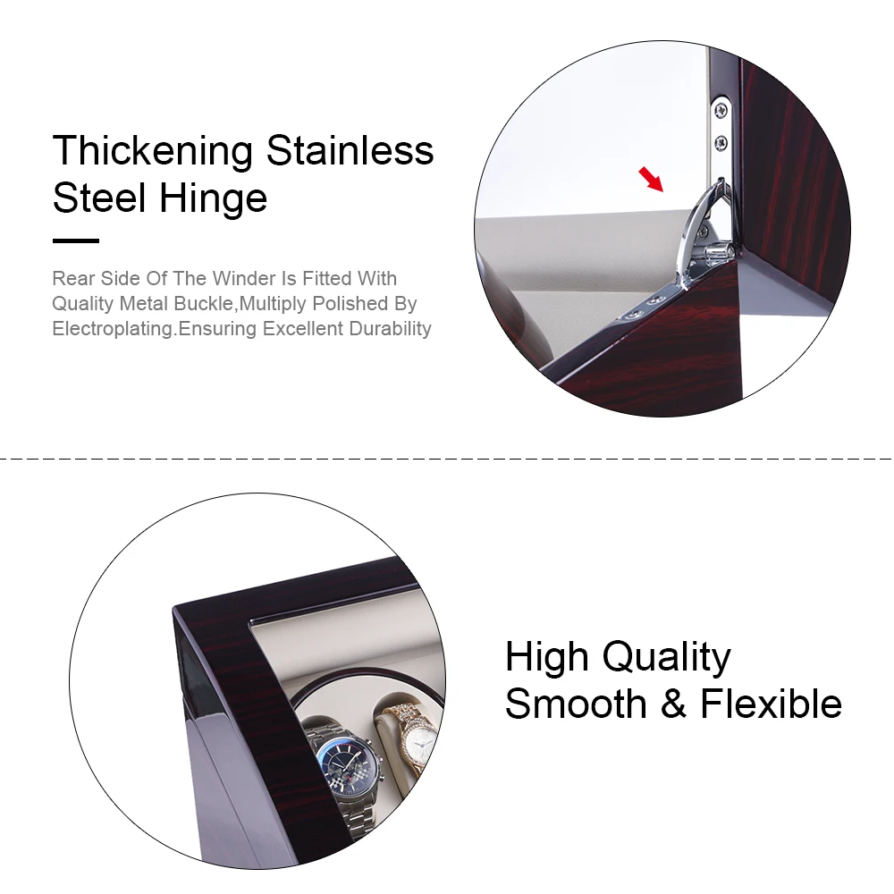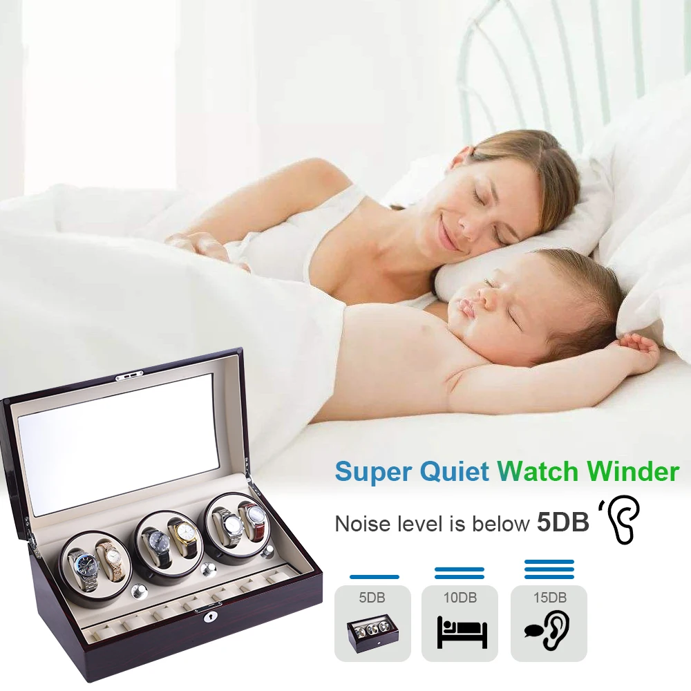【Extremely Quiet Winder】: This automatic watch winder box is powered with Imported Japanese Mabuchi, the noise is even as low as 5 db, will never disturb you in a silent place.