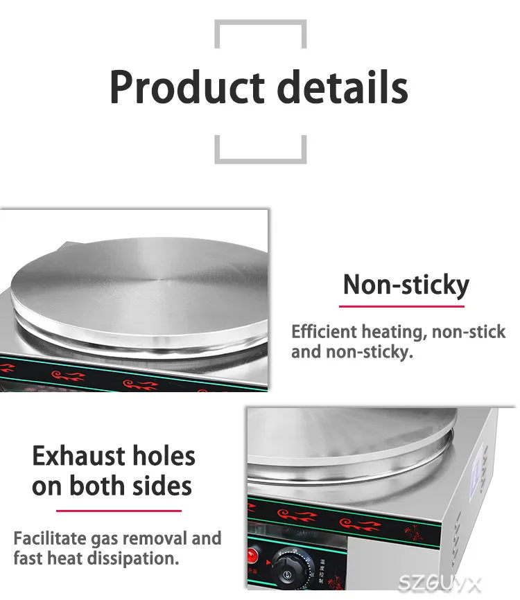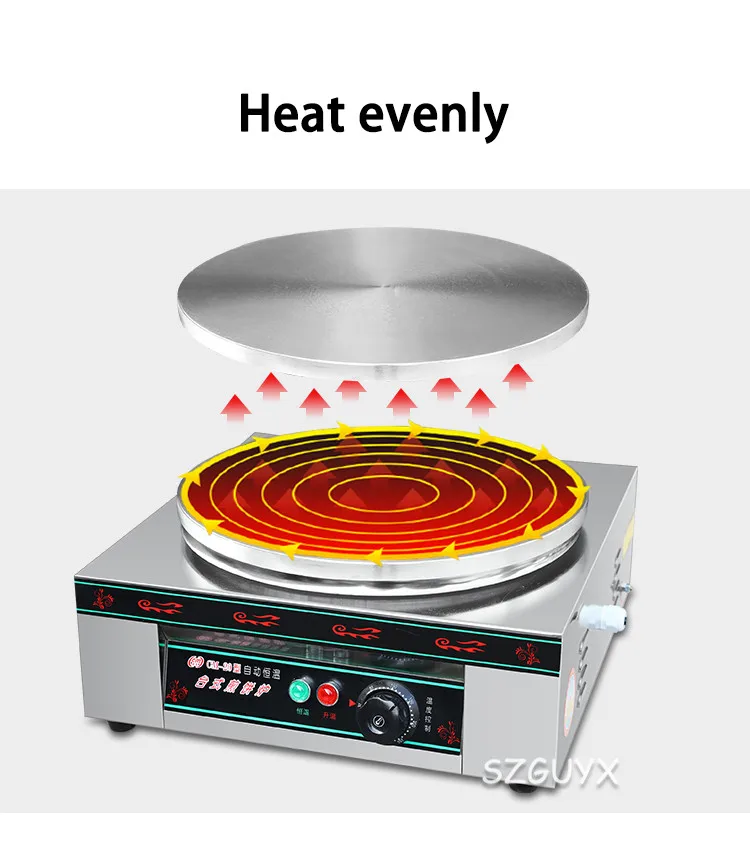 Название продукта: Сковорода для блинов 20 печь для блинов Диаметр алюминиевого горшка: 40 см Напряжение: 220-50 Гц Размер изделия: 45*45*19 см Диапазон температур: 0 ~ 300 ℃ Мощность: 2000 Вт Вес: 8 кг 45 печь для блинов Диаметр алюминиевого горшка: 45 см Напряжение: 220-50 Гц Размеры: 50*50*19 см Диапазон температур: 0 ~ 300 ℃ Мощность: 2500 Вт Вес: 10 кг