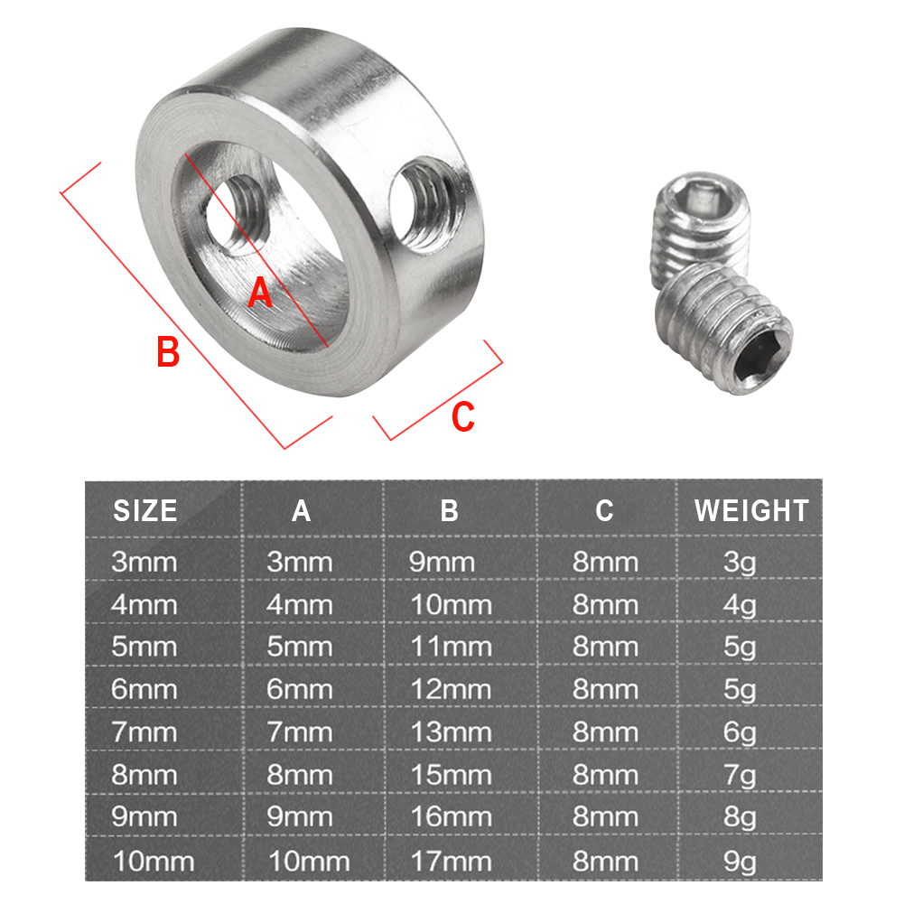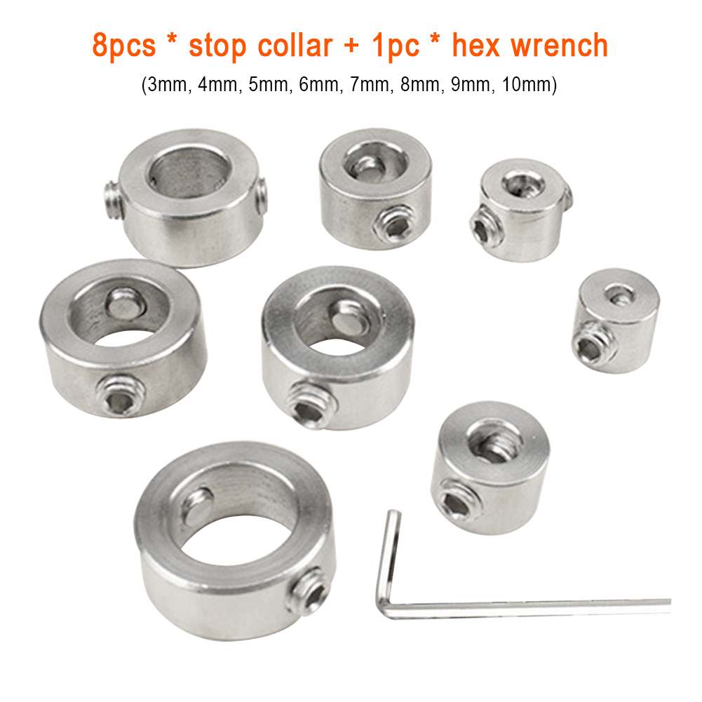 Комплектация: 8 стоп-Ошейников (3, 4, 5, 6, 7, 8, 9, 10 мм), 1 шестигранный ключ.