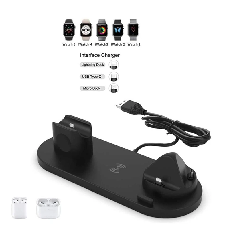 Зарядное устройство с поворотом на 360 °, зарядное устройство три в одном для iphone/micro/Type-C, беспроводная быстрая зарядка, подставка для смарт-часов, беспроводная Зарядная база для наушников.