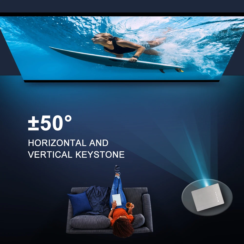 В отличие от большинства горизонтальных ручных брелоков ± 15 °, Vivicine модернизирован с инновационным ± 50 ° горизонтальной/вертикальной коррекцией Keystone, делает его простым для проектора в маленькой спальне, нет необходимости постоянно регулировать положение проектора.