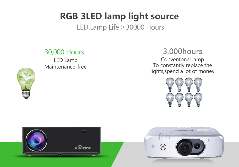 Если вы используете его 8 часов в день, вы можете использовать этот проектор более 10 лет без замены лампы