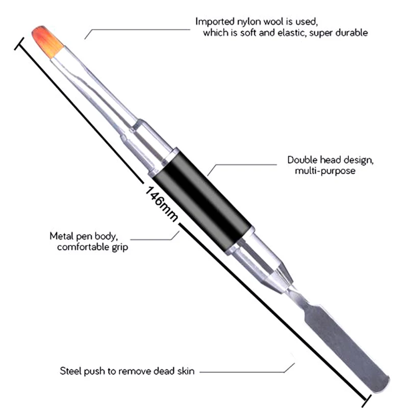 Двойной дизайн для использования с УФ-гелем для лепки накладных гелевых ногтей или удлинительных гелевых кончиков. Наконечник из нержавеющей стали предназначен для сбора УФ-геля, тонизированная Гелевая Кисть для смешивания геля для формирования кончиков ногтей.