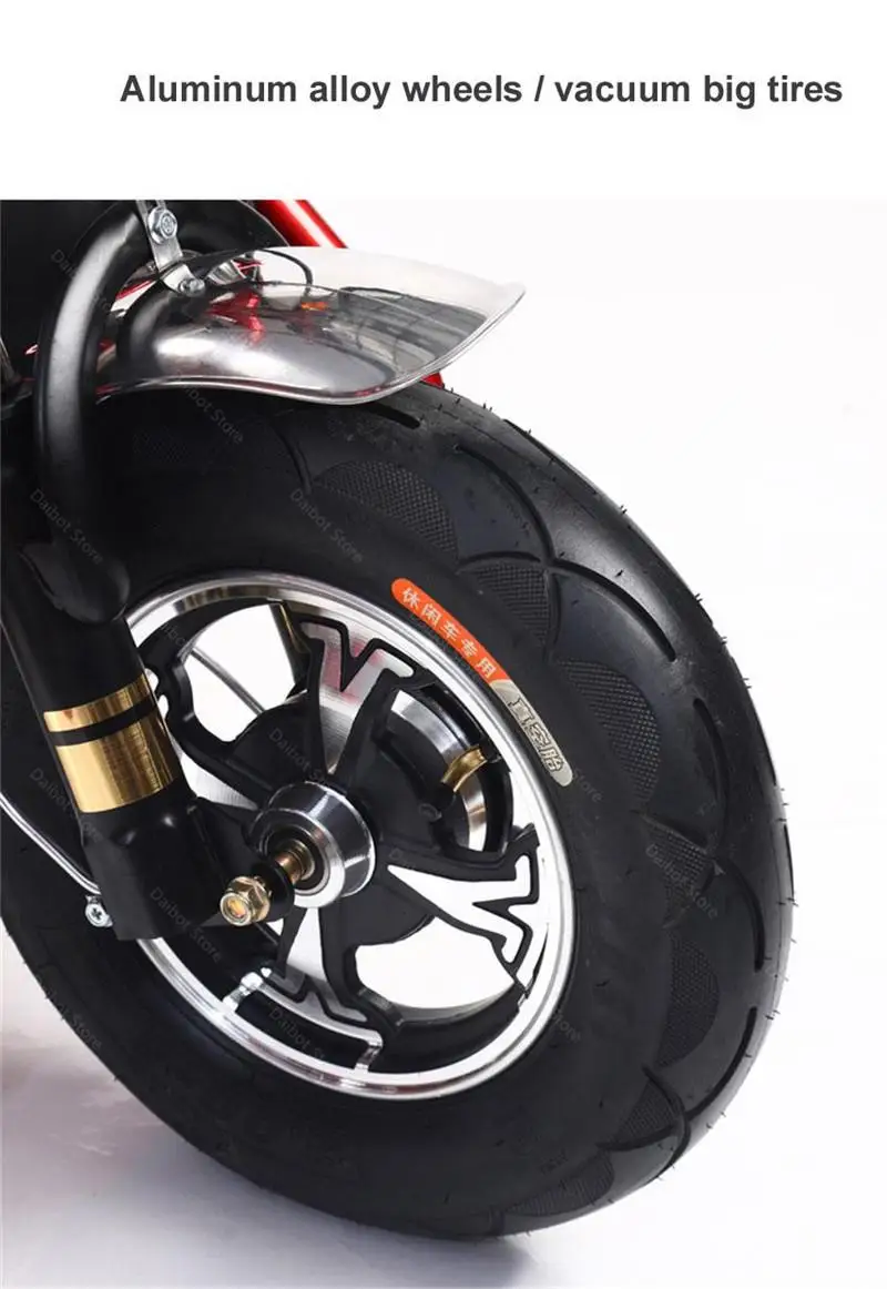 Особенность: ручка тормоза и ножной тормоз, гидравлическая система подвески, умный ЖК-дисплей, светодиодсветильник, фонарь поворота, задний фонарь, съемный аккумулятор (всего 48 В), С корзиной для покупок, системой противоугонной сигнализации.