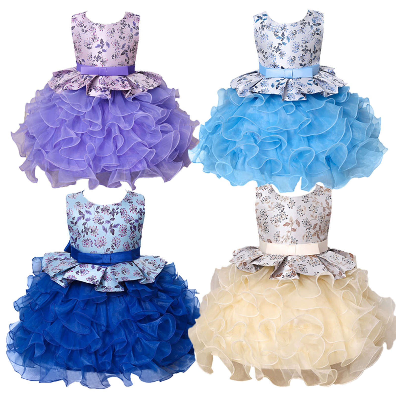 4 вида стилей детское бальное платье с цветочным кружевом для маленьких девочек, платье принцессы вечерние чное платье, одежда 0240, белое, синее, фиолетовое, розовое, От 0 до 6 лет