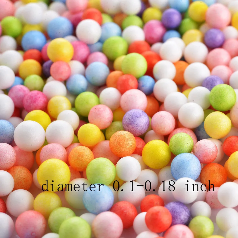 Посылка включает в себя-всего 4 упаковки (1 упаковка разных цветов, 1 упаковка белого цвета, 1 упаковка Розовый, 1 упаковка светло-голубой цвет), Размеры 0,1-0,18 дюймов, пенопластовые шарики Кол-во: около 15000 шт смешанный цвет + 3x5000 сплошной цвет