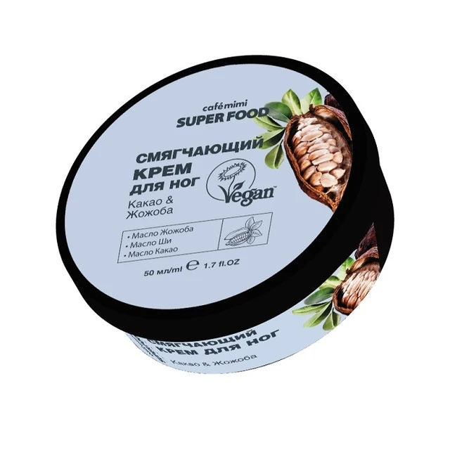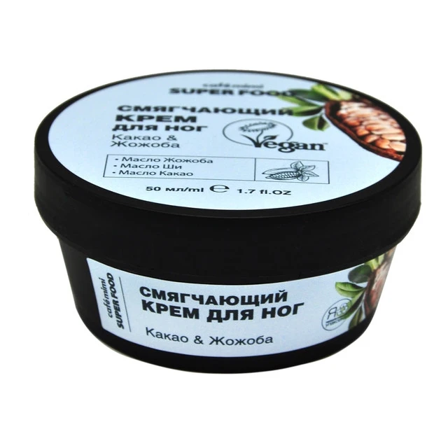Крем для ног на основе масла Ши, Какао и Жожоба глубоко питает и восстанавливает сухую кожу стоп, увлажняет и смягчает кожу, делая пяточки гладкими и нежными.