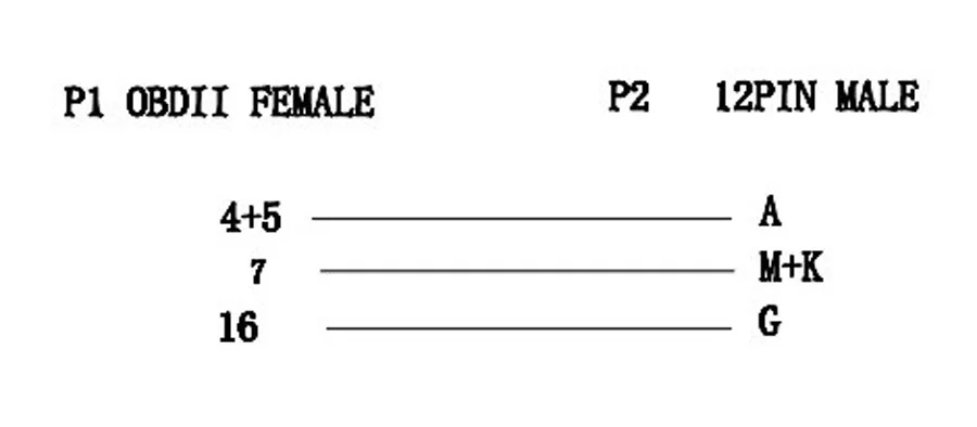 Connector:12 pin male connector to OBD2 16 pin female connector.