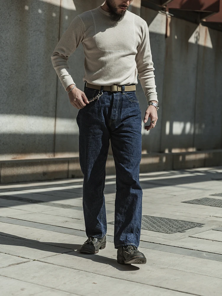 Воспроизводятся Вторую мировую войну Тип кромка джинсы, изготовленные из 13,75 oz джинсовый кромки (один-стирка: 14,5 oz), точно восстановить сведения об оригинальной версии. · 13,75 oz с каймой из джинсовой ткани (100% хлопок), 14,5 oz после одного-wash · Пятикарманный стиль с аутентичными шайбами и заклепками · Растительного дубления лошадиной · Машинная стирка, стирка и сушка наизнанку с вещами разных цветов