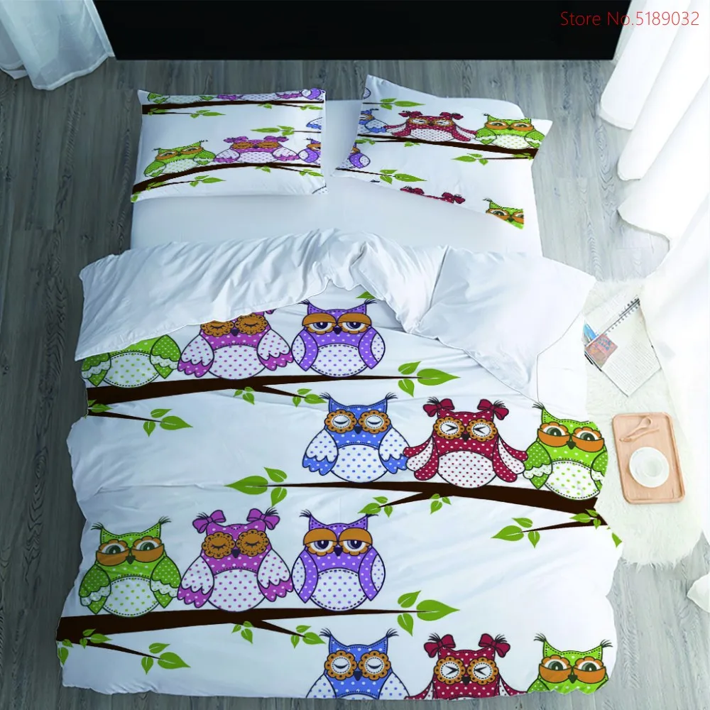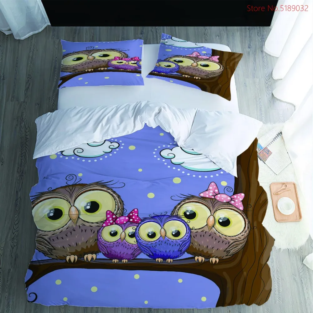 Комплект постельного белья с рисунком совы, милые животные, пододеяльник, набор из 2/3 предметов для девочек, взрослых, подростков, мальчиков, Комплект постельного белья, наволочка, без простыни
