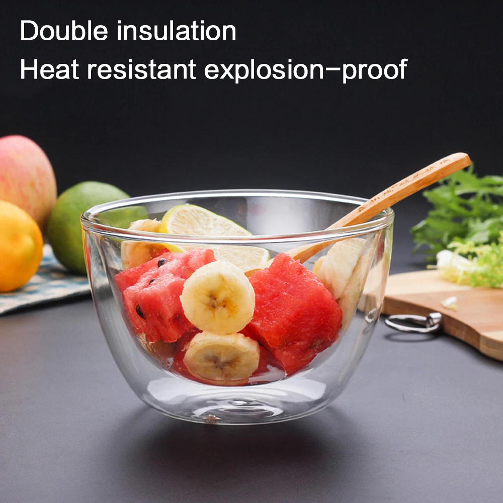 Двухслойная термостойкая чаша из боросиликатного стекла для салата чаша для микроволновой печи Посуда для мороженого жаростойкая посуда для салата 35