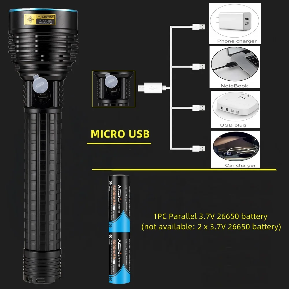 1. Этот продукт Применение 1PC параллельный 3,7 в 26650 батарея (не в наличии: 2x3,7 V 26650 батареи) перезаряжаемая литиевая батарея. Используется неправильный аккумулятор, в результате чего фонарик не работает, мы не будем нести ответственность, спасибо!