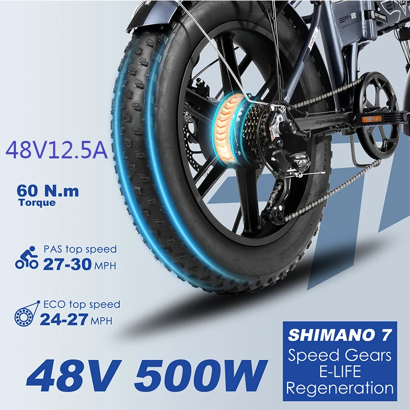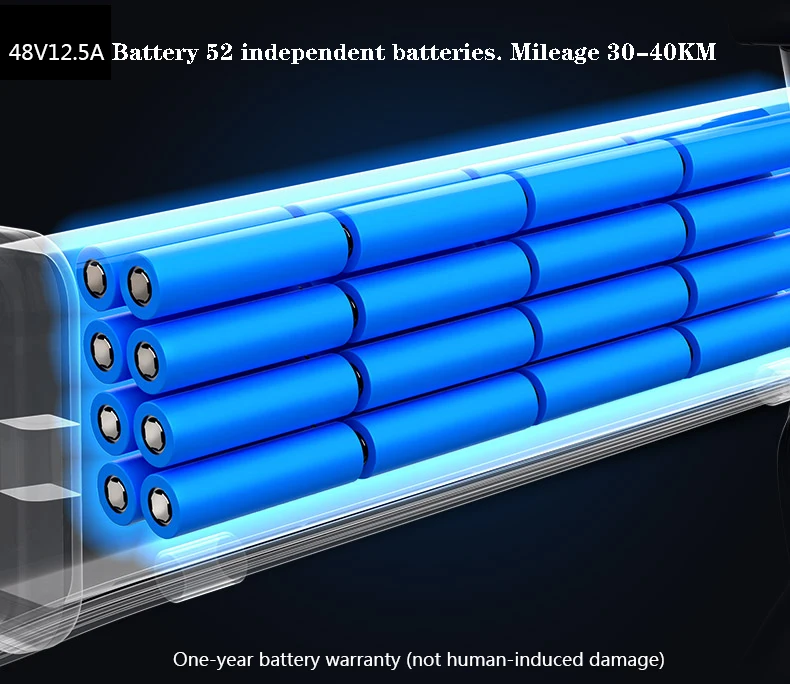 【Мощный двигатель и сменный аккумулятор: с бесщеточным Мотором 48 в 500 Вт, он может легко помочь вам путешествовать на 24 миль/ч/38 км/ч (Электрический режим в полном заряде). И с батареей 48V12.5Ah, расстояние будет 28 миль. (Нагрузка 150 фунтов).