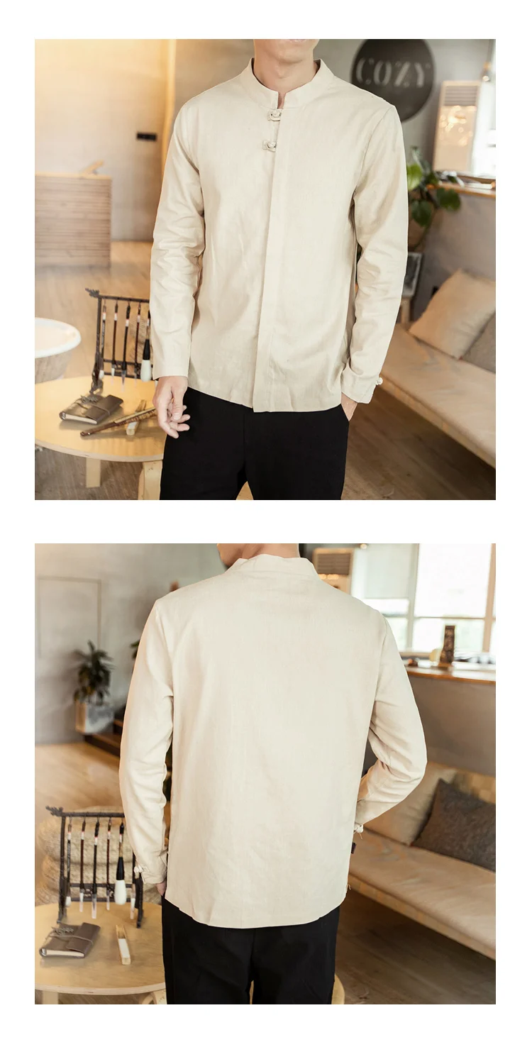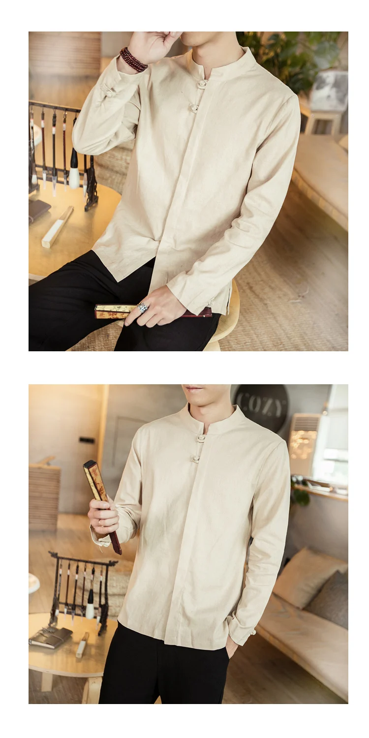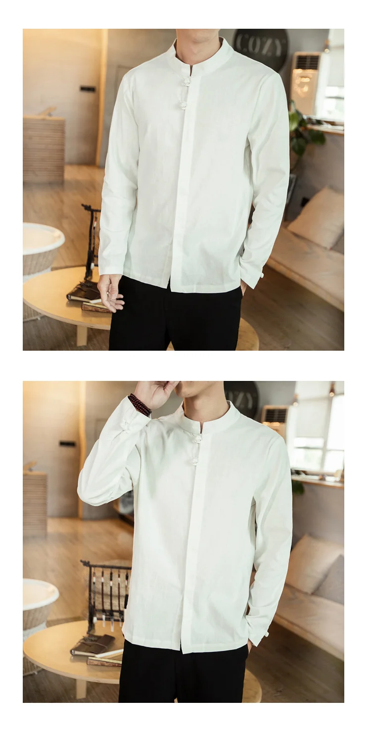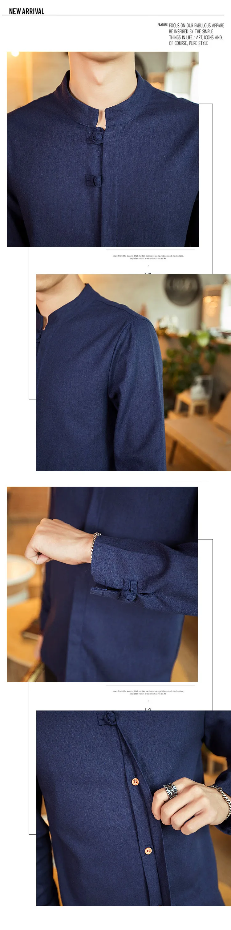 Хлопок и лен воротник Мандарин Тан костюмы мужская черная блузка в китайском стиле винтажная Этническая одежда Лен большой размер синяя рубашка с пряжкой