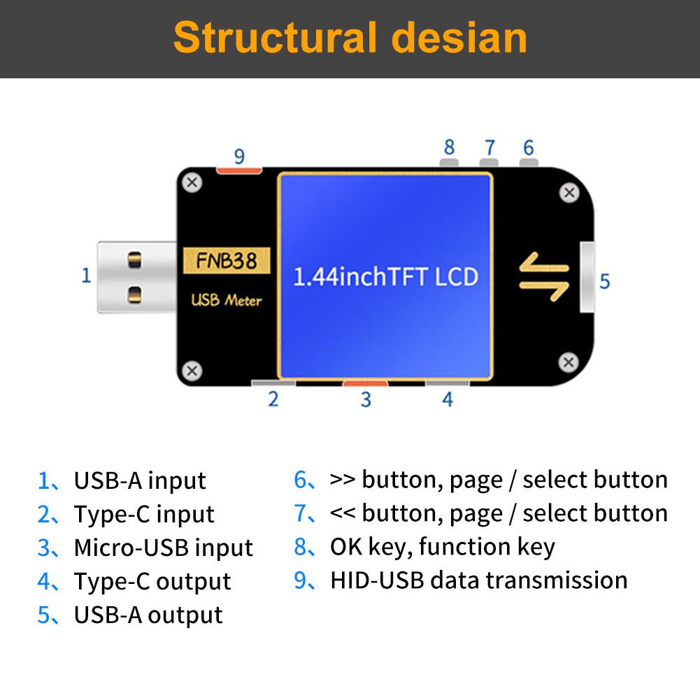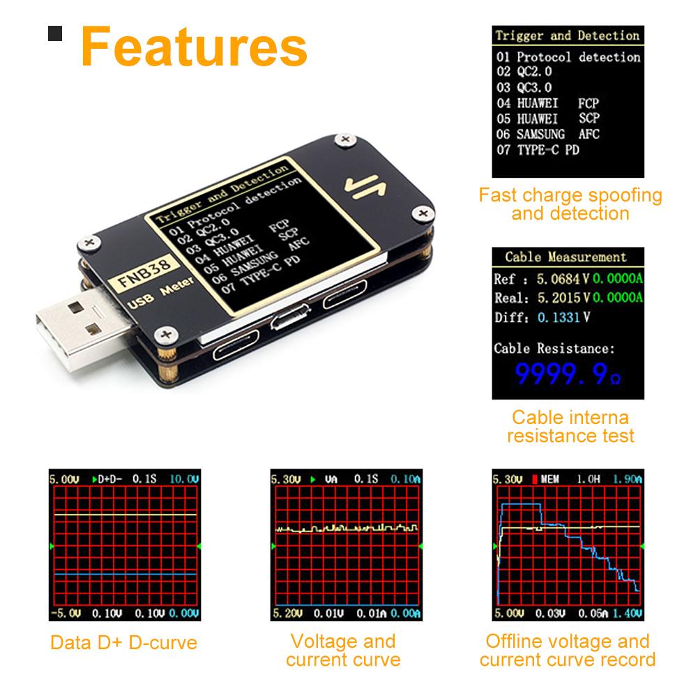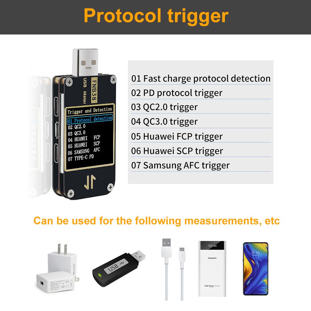 FNB38 USB ЖК-вольтметр тока QC4 PD3.0 2,0 PPS Быстрая зарядка протокол тестер