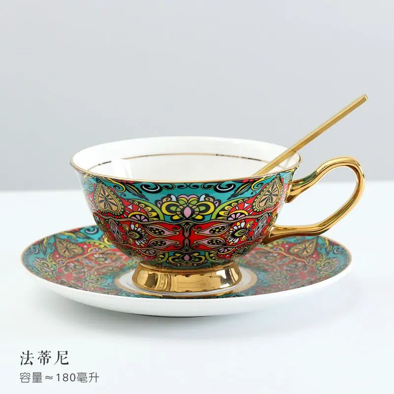 Top Grade quality Bone china Plus Bohemian styles pattern and Golden handles, this is not just a delicate coffee mug, but also the splendid decoration to your room/house!