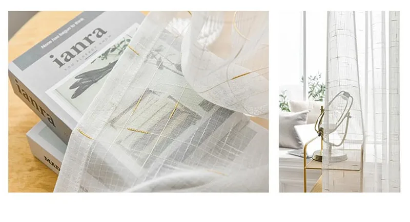 Золотая проволока Тюль занавеска для гостиной вуаль отвесная занавеска клетчатая льняная спальня Bay кухня драпировка панель скандинавский стиль