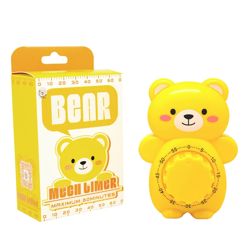 Милый мультяшный медвежонок, таймер для выпечки, механический таймер для приготовления пищи, 60 минут, крученый таймер с кольцом, оповещение без батареи