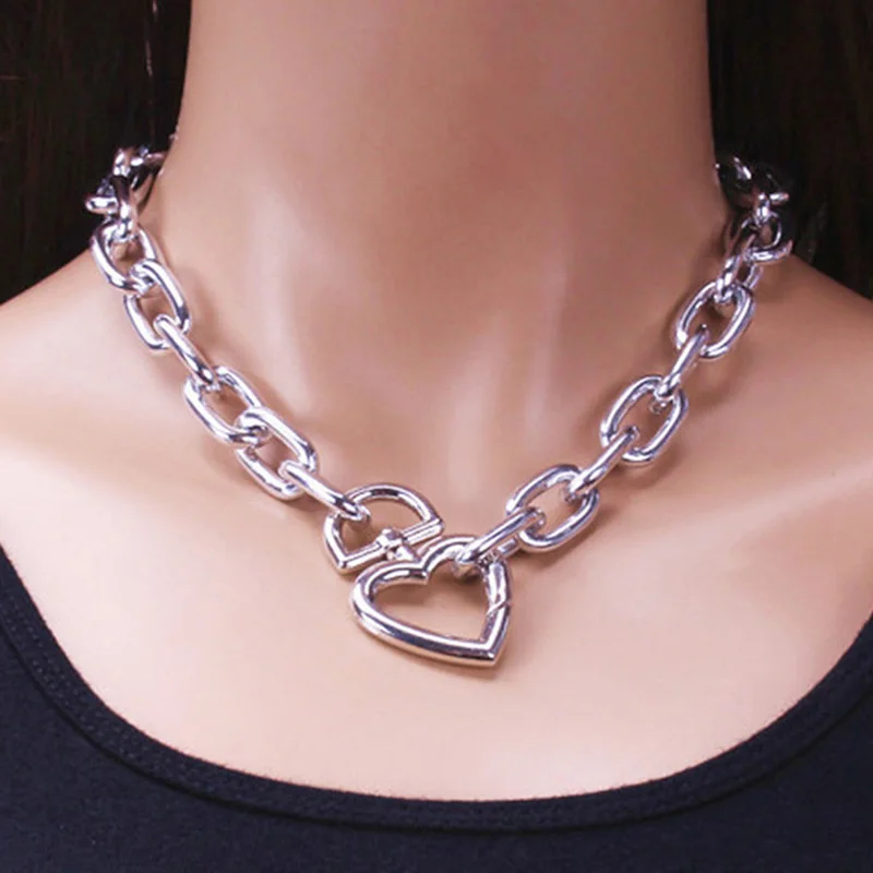 Wgoud 2021 чокер золотого цвета в форме сердца с замком ожерелье для женщин панк кубинская цепочка Милая бижутерия на ключицы геометрические Винтажные Украшения