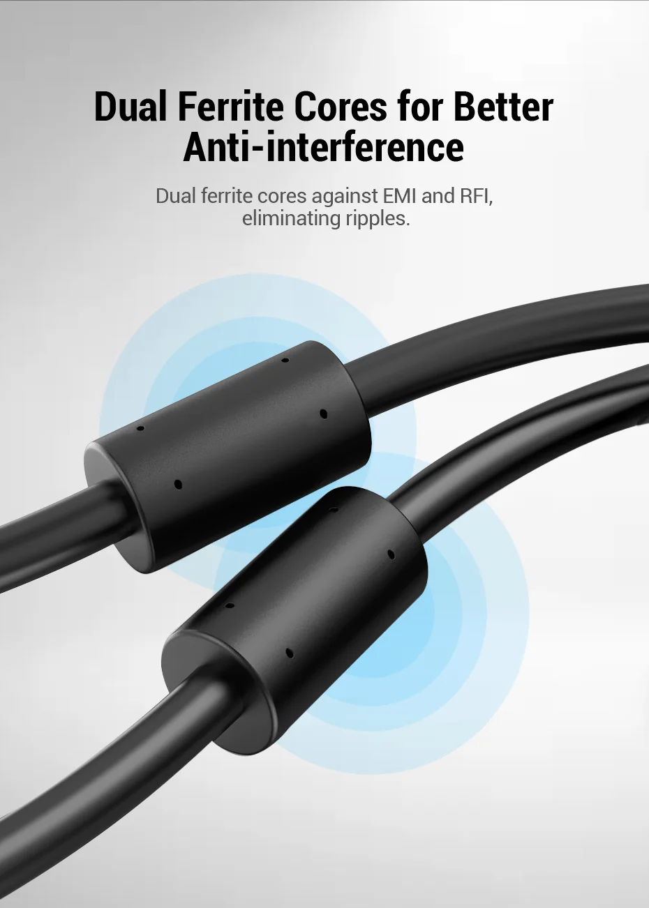 Проводник из чистой меди и несколько экранов для устойчивости к помехам и искажениям. Просто наслаждайтесь просмотром в формате HD.