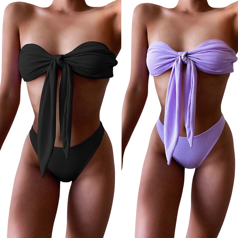 Новый Женственная Дамская обувь с открытыми плечами комплект бикини с бантом однотонная Цвет купальники Юбка-брюки для девочек, многослойная юбка-пачка