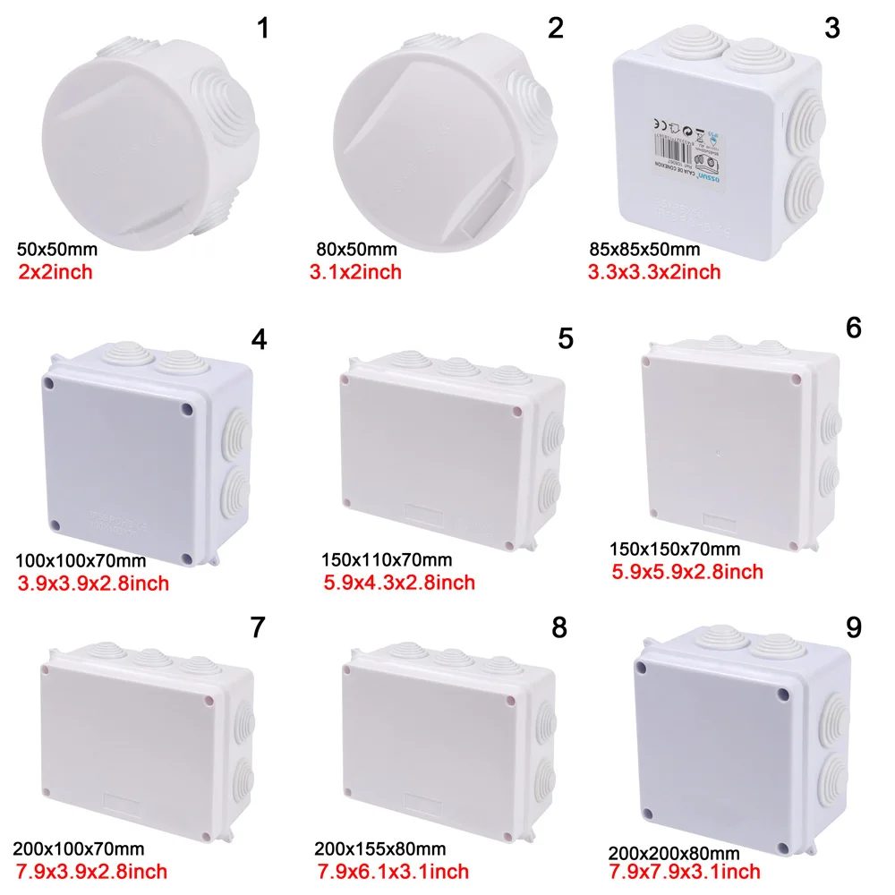 Совершенно новый высококачественный Материал: АБС-пластик Название продукта: распределительная коробка Тип крепления: поверхностное крепление Водонепроницаемость: IP55/IP65 Цвет: белый Размер: 50*50/80*50/85*85*50/100*100*70/150*110*70/150*150*70/200*100*70/200*155*80/200*200*80 мм Количество: 1 шт. Особенности: IP55 / 65 водонепроницаемая/Пылезащитная распределительная коробка, идеально подходит для использования на улице Высокая огнестойкость, хорошая изоляция, антикоррозийная, Антистатическая Хорошая герметизация и длительный срок службы Простота установки и использования. Примечание: 1,1 см = 10 мм = 0,39 дюймов. 2. Допускается погрешность в 1-2 мм из-за ручного измерения и убедитесь, что вы не возражаете перед заказом. 3. Пожалуйста, поймите, что цвета могут иметь хроматическую аберрацию, так как разное размещение фотографий.