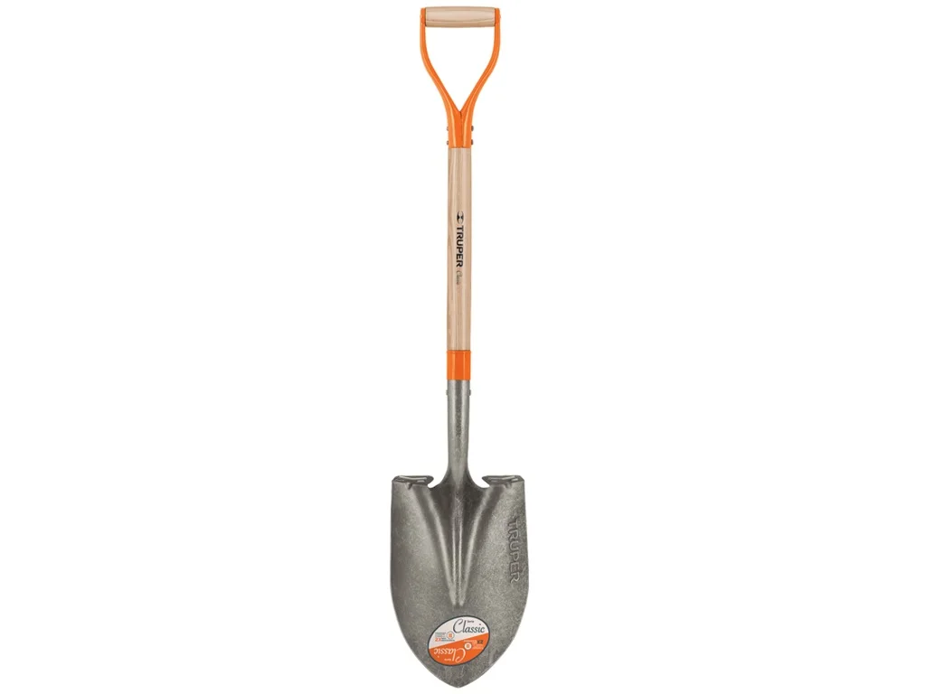 Лопата штыковая,сферический ковш,черенок-ясень, ручка-металл. Дополнительное покрытие металла твердым лаком. Увеличенные уступы.