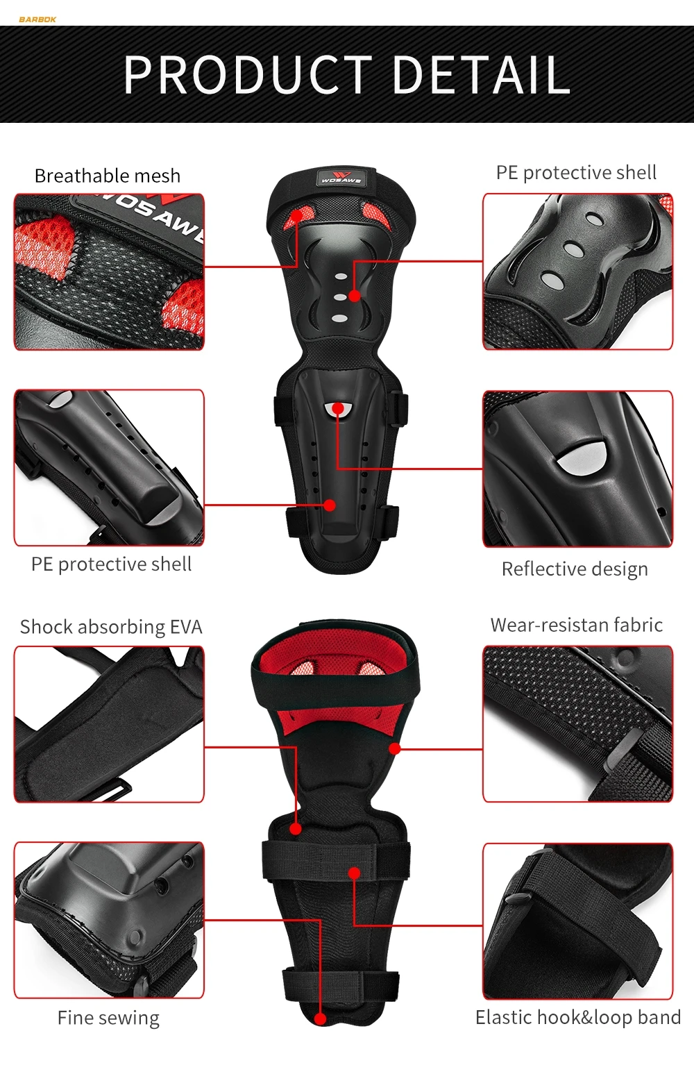 Наколенники Wosawe состоят из ударопрочного износостойкого арамидного волокна и пенопласта из ЭВА высокой плотности, спроектированного с двумя широкими регулируемыми лямками и высокой гибкостью, для обеспечения комфортной защиты колена и голени. С максимальной вентиляцией и высокой ударопрочностью, наслаждаясь спортом безопасности в любое время в любом месте!
