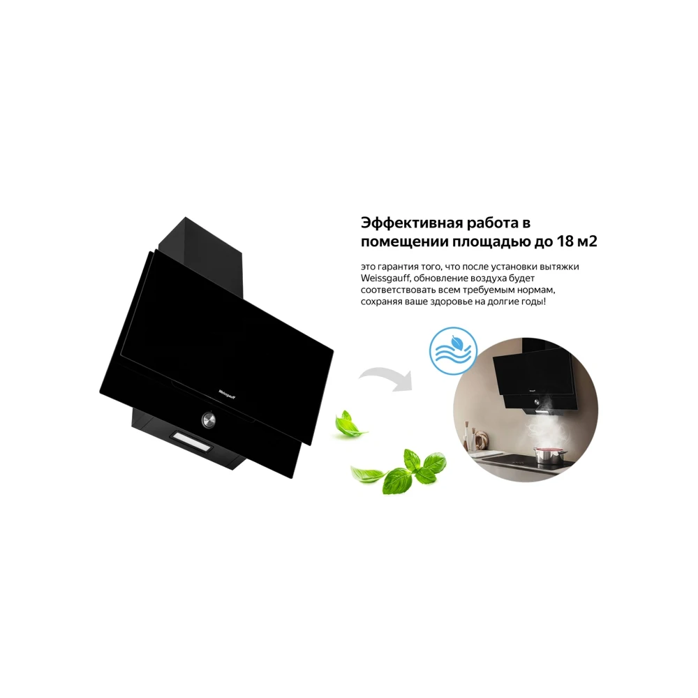 Эффективная работа в помещении площадью до 18 м2 - это гарантия того, что после установки вытяжки Weissgauff, обновление воздуха будет соответствовать всем требуемым нормам, сохраняя ваше здоровье на долгие годы!