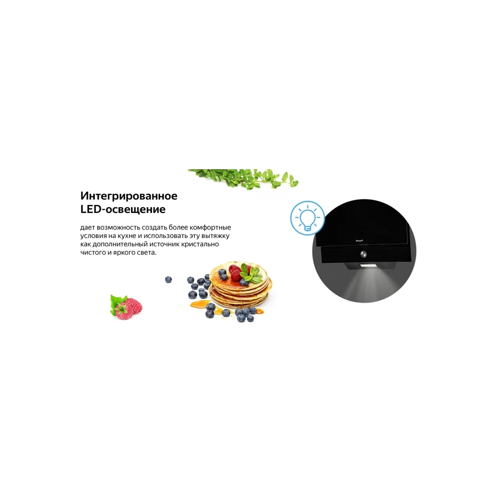 Интегрированное LED освещение дает возможность создать более комфортные условия на кухне и использовать эту вытяжку как дополнительный источник кристально чистого и яркого света.