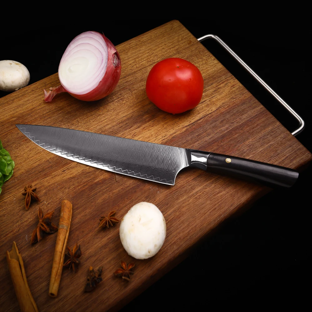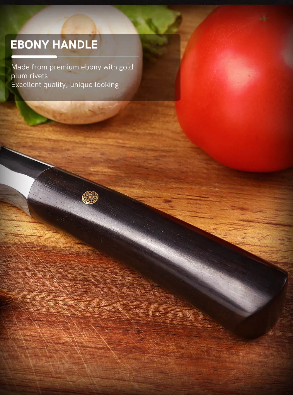 Материал ручки изготовлен из высококачественного черного дерева и отличается высоким качеством и прочностью. Это хороший острый нож, который освободит вашу кухню от тупого Ножа! Начните наслаждаться приготовлением пищи снова!