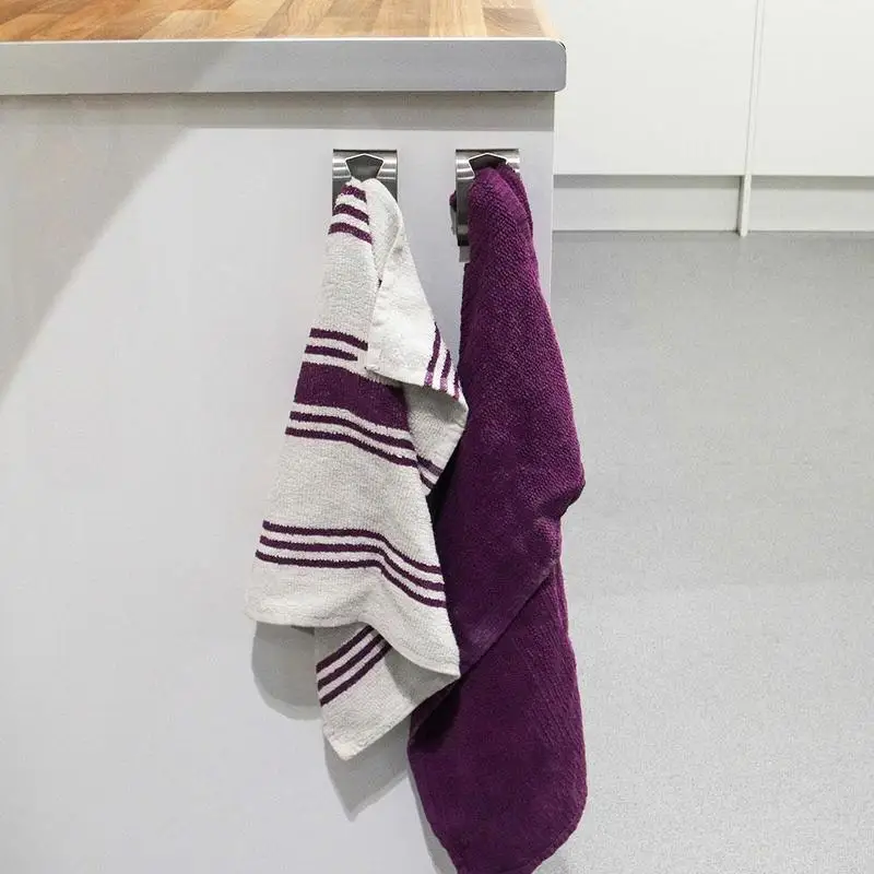 Towel Holders ensure that all towels stay inside the hook, where they are supposed to be. You can dry your hands and the towels wont fall out, however, it is also easy to remove them from the hook if needed. The towel holders are really easy to install, all you have to do is press the self-adhesive sticker against a clean, flat surface and hold for 1 minute. Absolutely no drilling is required so you dont create any damages to your home!