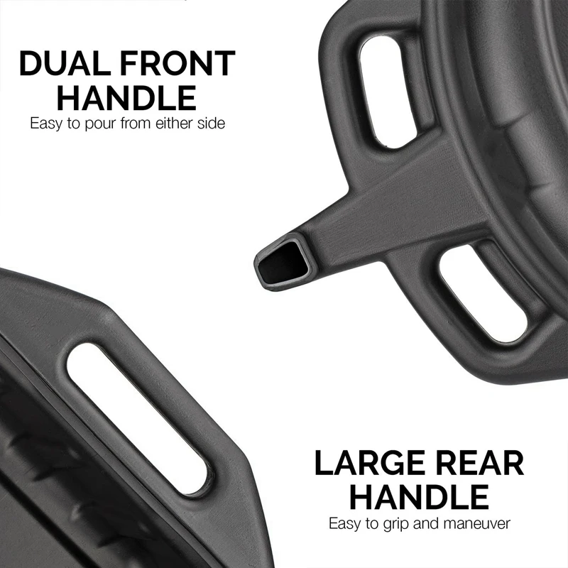 Сливная кастрюля изготовлена из коррозионно-стойкого, высококачественного вторичного полиэтиленового пластика, поэтому ваша масляная кастрюля может быть изготовлена из прочного масла, бензина и антифриза.