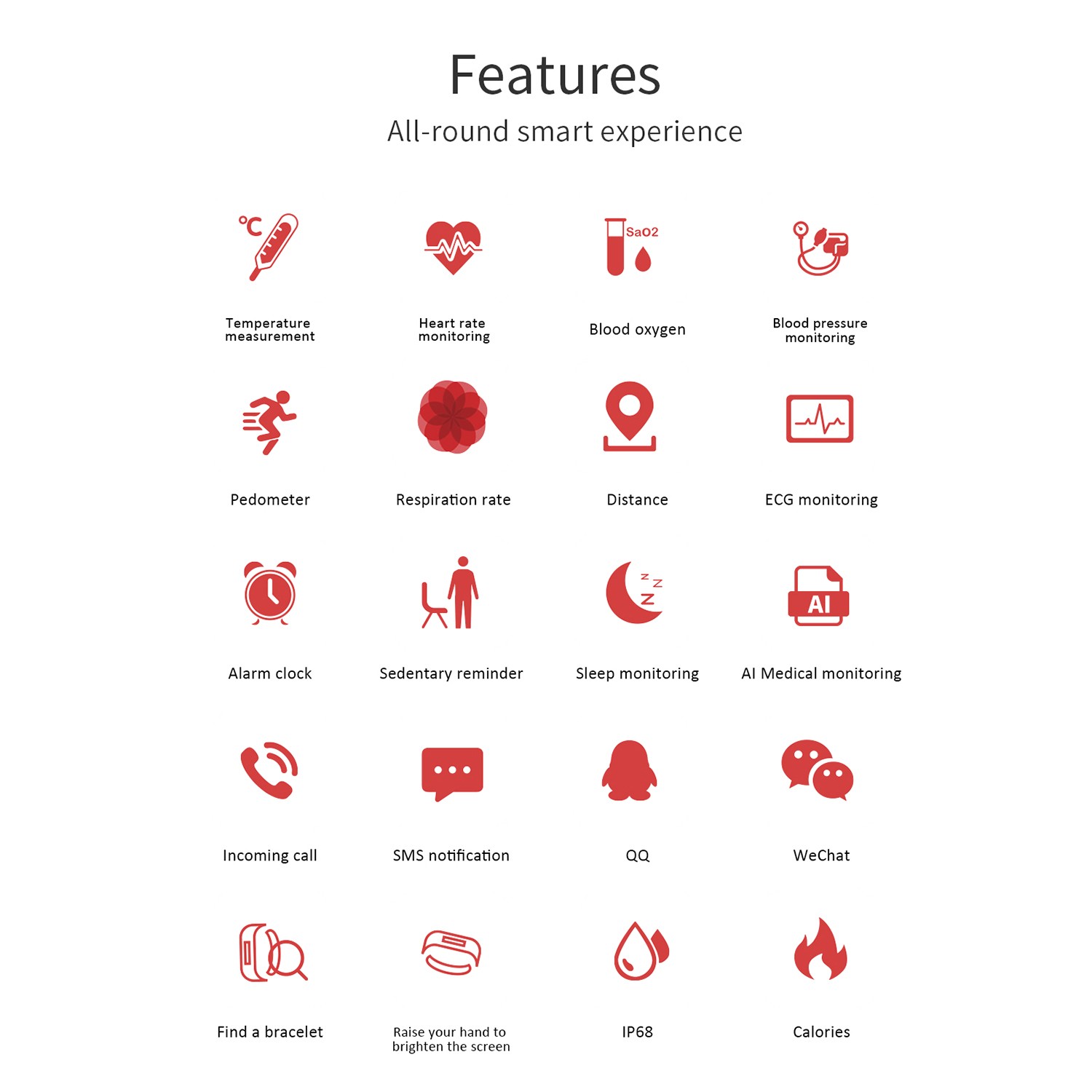 Шаг, калории, расстояние, сон Монитор, спорт, напоминание о звонке, напоминание о тревоге, поднимите руку часам Lightr, Social share(wechat, QQ, Facebook, Twitter, пожать руку, чтобы взять phonto"Продукт включает в себя