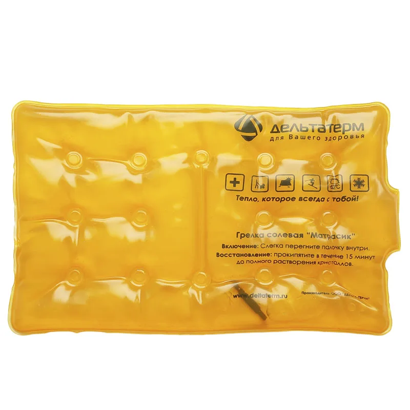 Солевая грелка "Матрасик" идеально подходит для прогревания больших участков тела (поясницы, спины). Его можно использовать на прогулках с детьми (вкладывать в коляску), в походах (в спальный мешок), в холодных электричках (положить на сиденье).