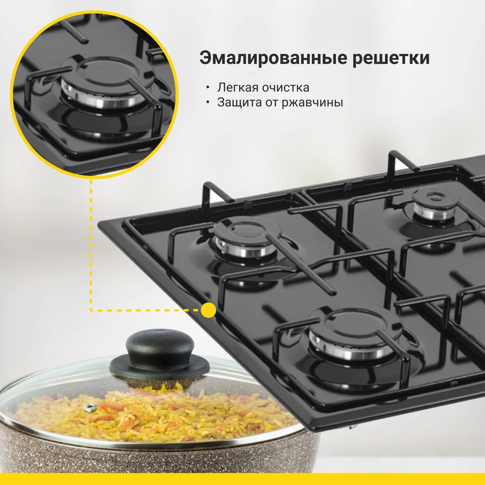 Газовая варочная панель Simfer H60Q40B401 серия Comfort (с автоподжигом, эмалированная сталь)