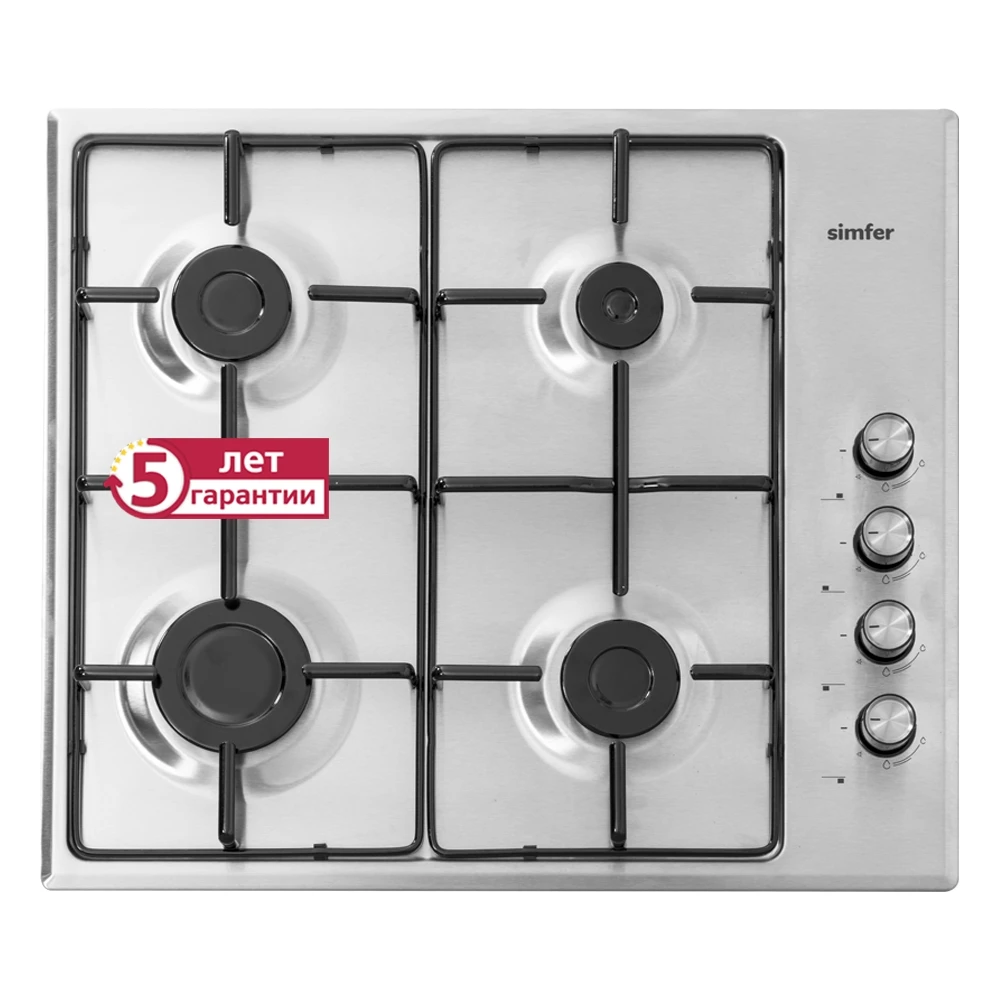Gas hob Simfer flat-a model that thanks to its compact size organically fits into the interior of your kitchen and will make the daily cooking process comfortable. The working surface is made of stainless steel-a durable and durable material. It contains four burners-different in diameter and flame power in them. And so you can choose the optimal burner for cooking a variety of dishes. For convenient use, the rotary switches are built-in electric ignition, which greatly simplifies work with the panel. Start cooking exquisite dishes together with the Simfer hob!