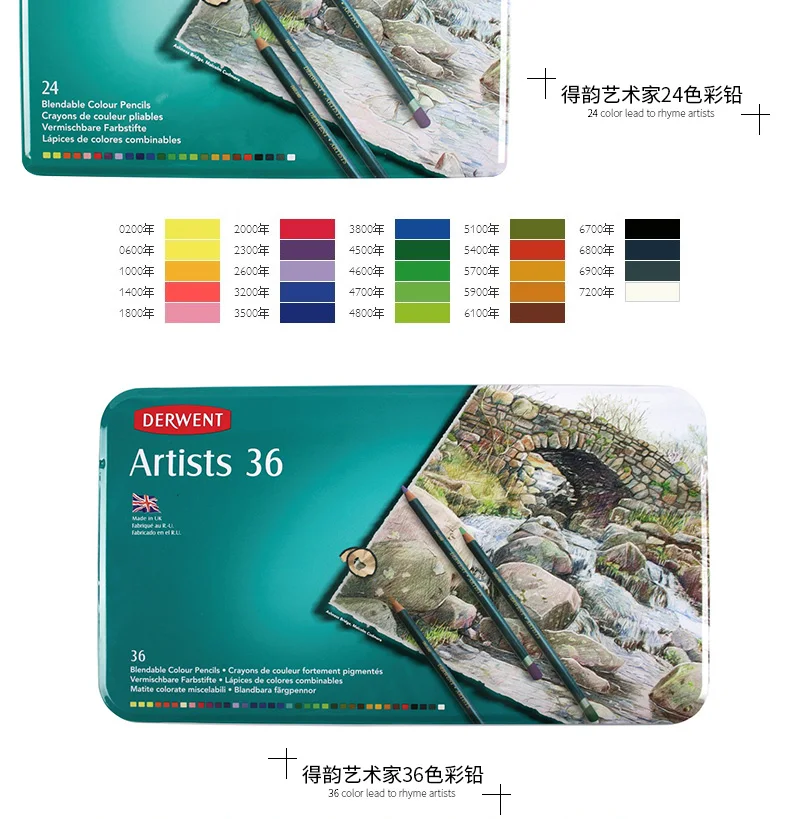 Оригинальный британский подарок dergoing artist Color наборы карандашей 12/24/36/72, жестяная коробка, разноцветный набор карандашей для рисования