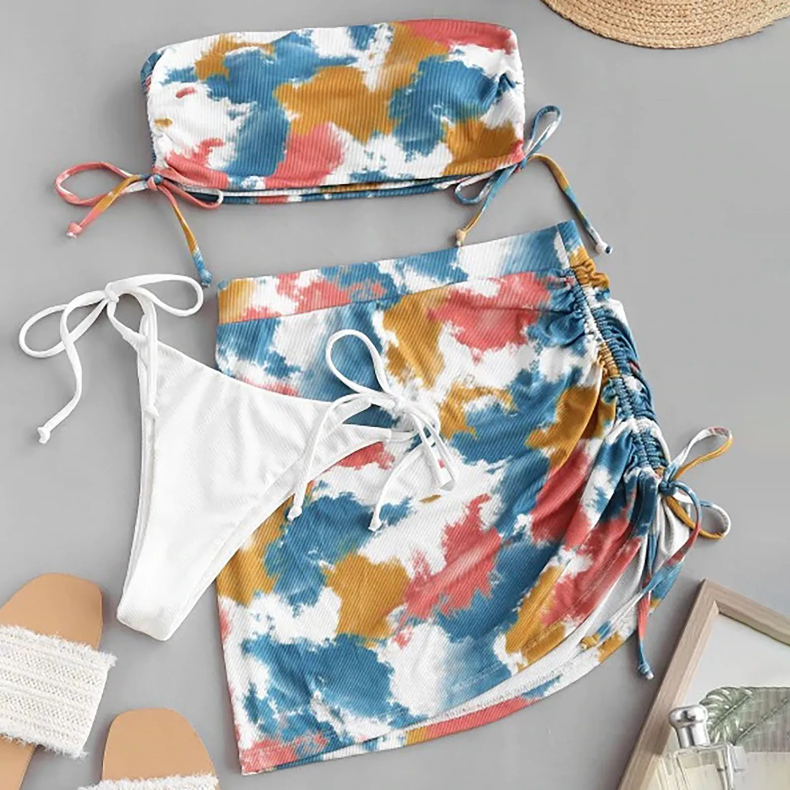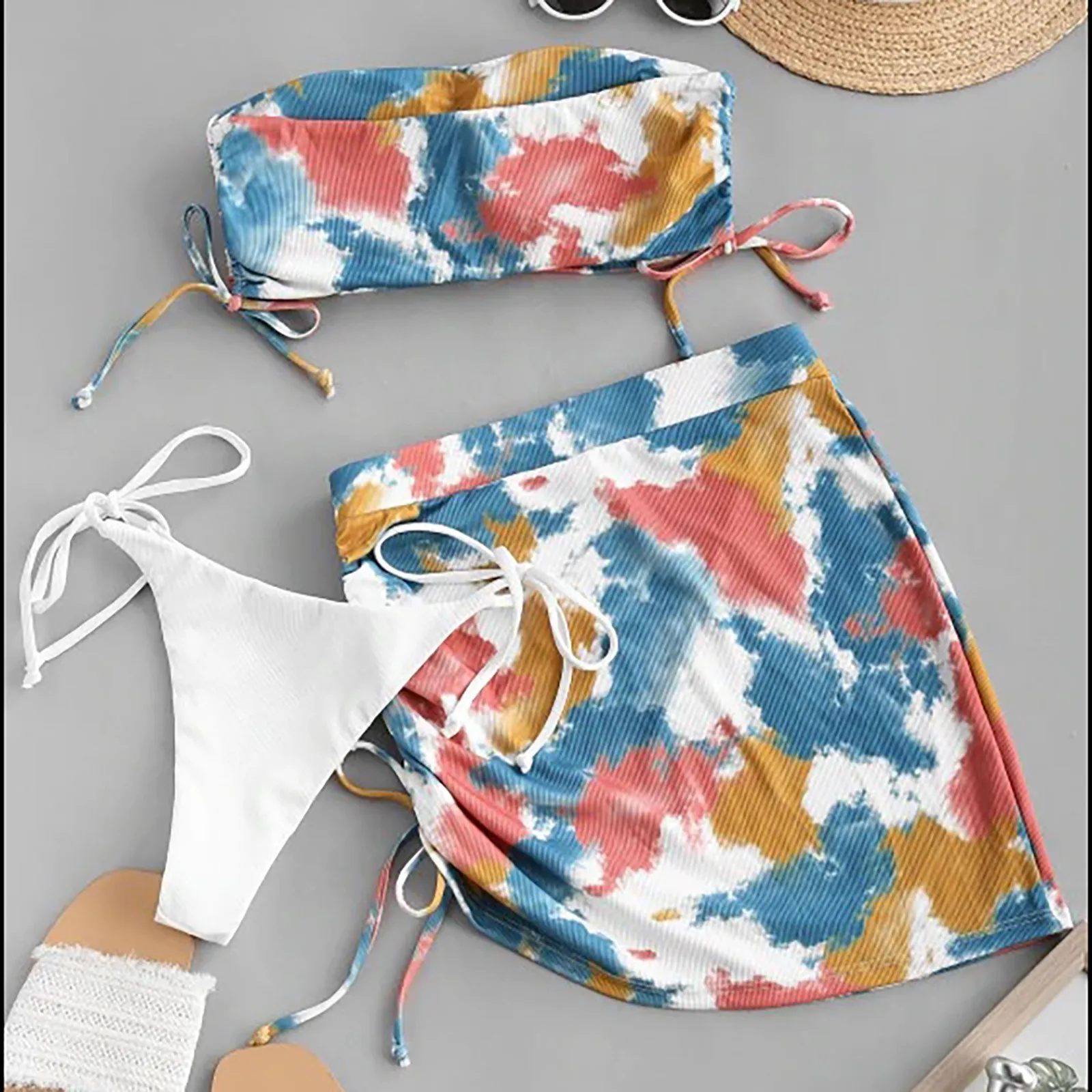 Летний женский раздельный купальник с галстуком-краской, Модный Купальник, пляжная одежда, комплект бикини