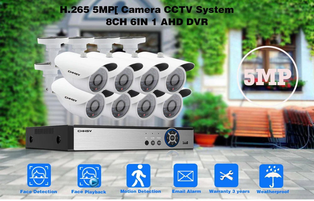 Камеры 4/8 x HD 5.0MP для помещений и улицы, ИК дневное ночное видение, водонепроницаемые